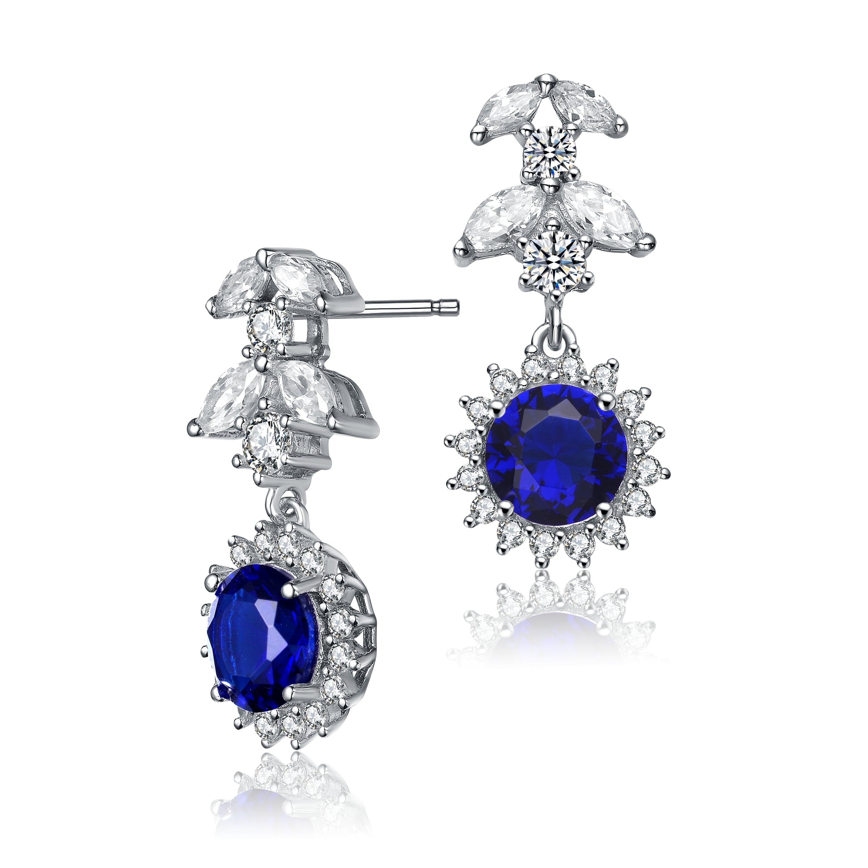Brighten up the room when wearing these sterling silver dangle earrings. Theyre the perfect addition to your evening attire. It feature an ancher shape with spiky CZ's paving around a deep blue CZ stone in the center. They are the most appreciated when giving as a gift to you beloved!