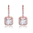This spellbinding pair of earrings displays a large cubic zirconia solitaire engulfed with smaller cubic zirconia stones in rose gold plated sterling silver. Makes a great present.