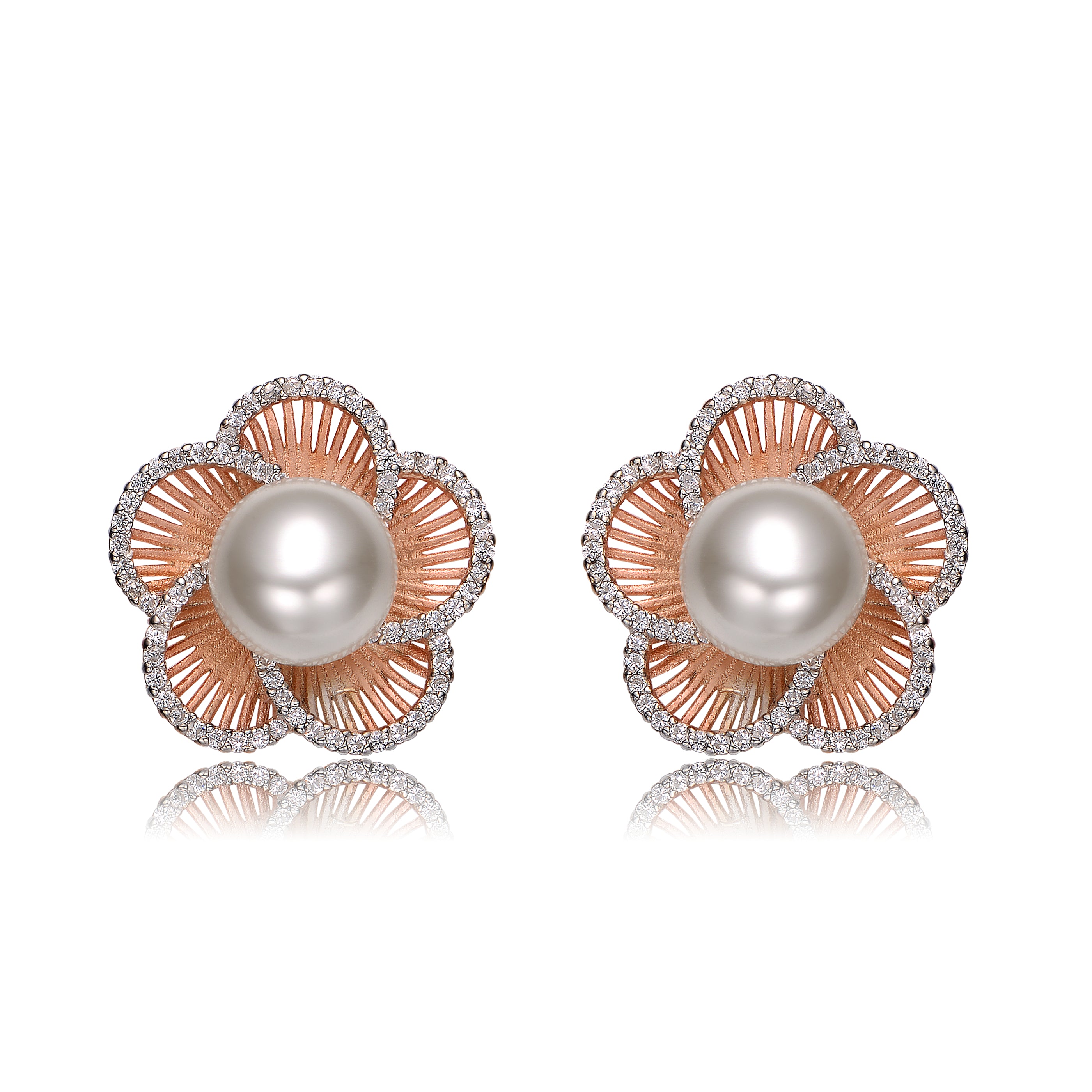 White Gold Cubic Zirconia 18K Rose Gold Flower Design Sterling Silver Stud Earrings