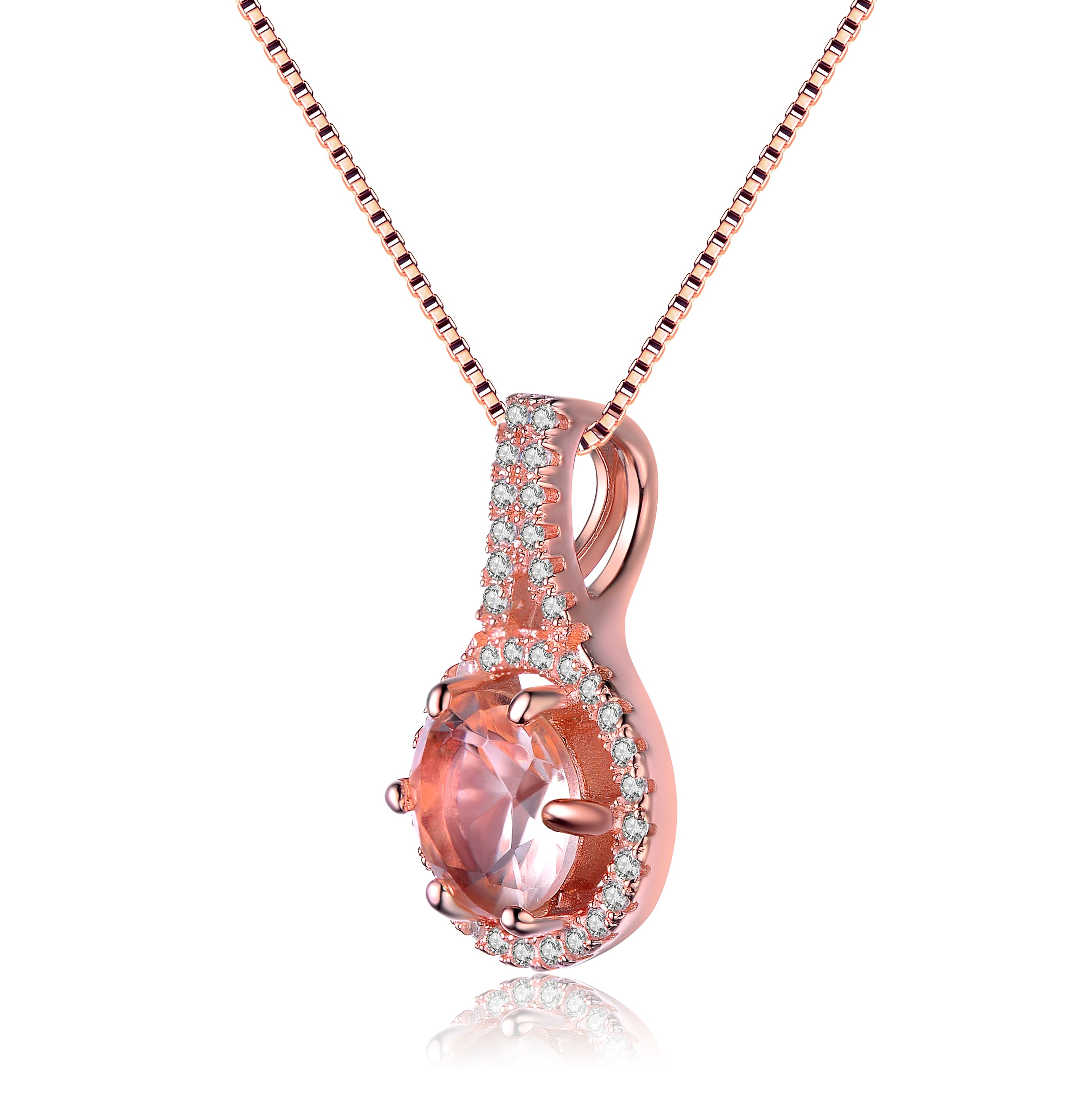 A round champagne cubic zirconia solitaire is at the heart of this rose gold necklace. It ups the sparkle with extra clear cubic zirconia stones.
