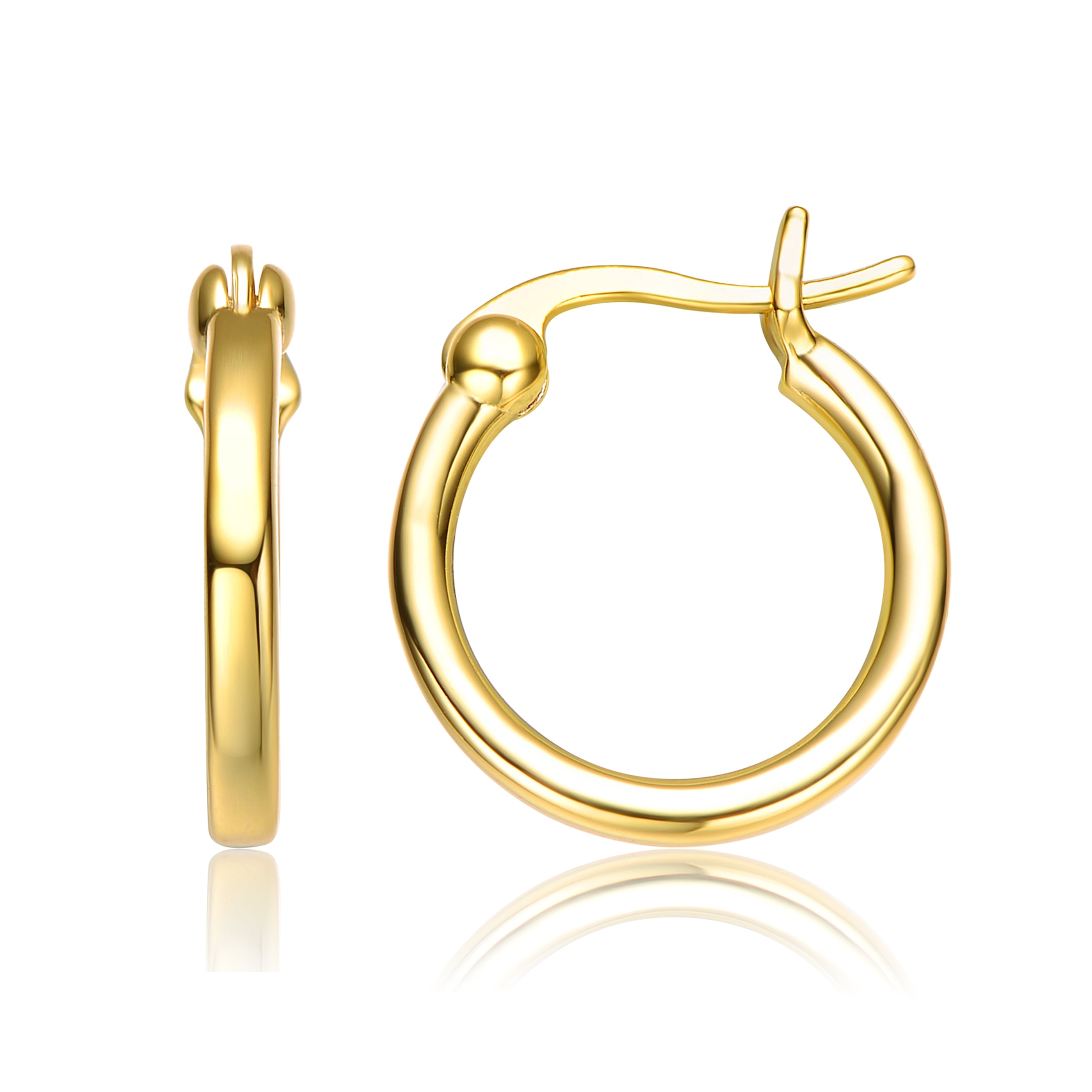 Stylish Sterling Silver 14K Gold Plated Clear Cubic Zirconia Hoop Earrings. This stylish pair of earrings features interesting hoop design made out of solid silver. Crafted of Sterling Silver with 14K Gold Plating and it is secured with saddle back closure. Perfect piece of jewelry for stylish combinations. This item also makes a sensational gift.