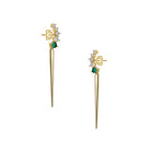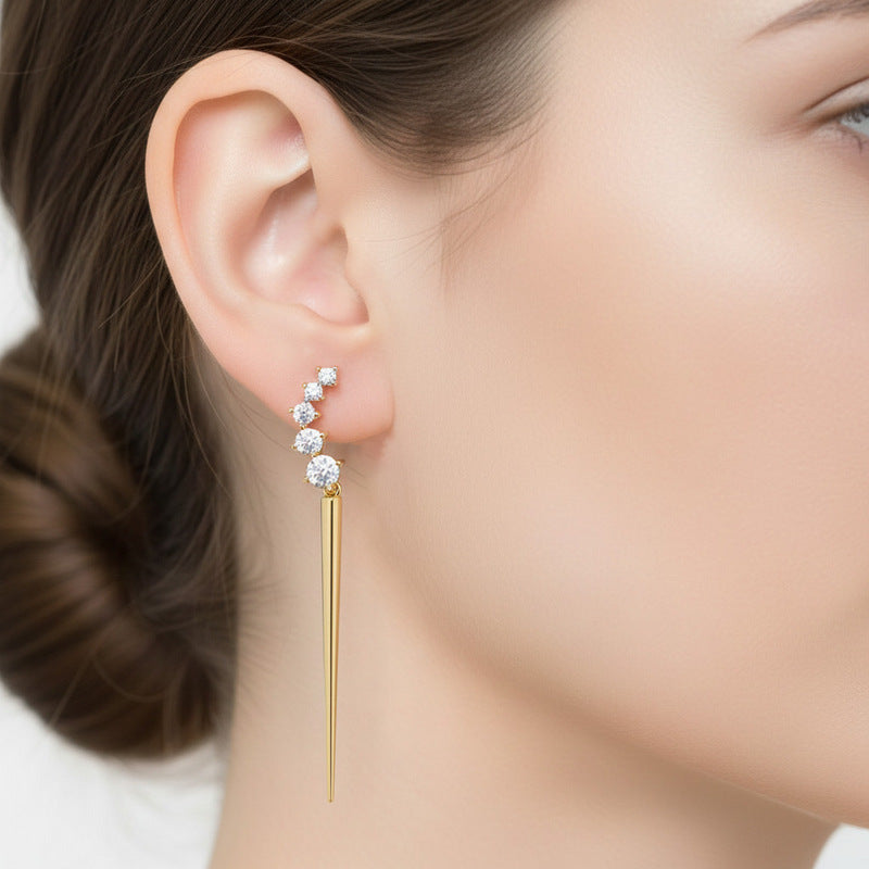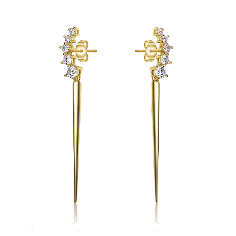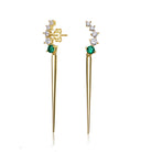 Sleek and contemporary, these dangle earrings make a striking statement with cascading clusters of brilliant cubic zirconia stones accented by polished spike details for a bold, hardware-inspired look. Crafted from .925 sterling silver and finished in luminous 14K gold plating, each pair is secured with a classic butterfly backing for comfortable wear. Designed to elevate both day and evening styles, these earrings are offered in your choice of Green or Gold stone color options.