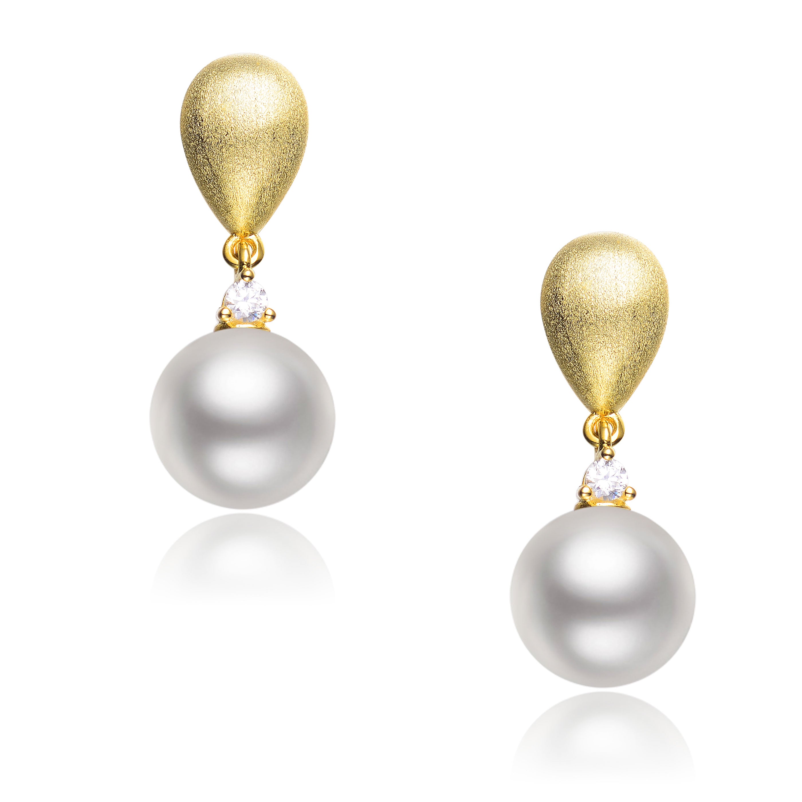Sterling Silver Cubic Zirconia Stone. Complete your outfit with these beautiful earrings. These pearl earrings are adored with one sparkling CZ stone between the uper and lower pearl. These beautiful earrings are secured with butterfly post backs.