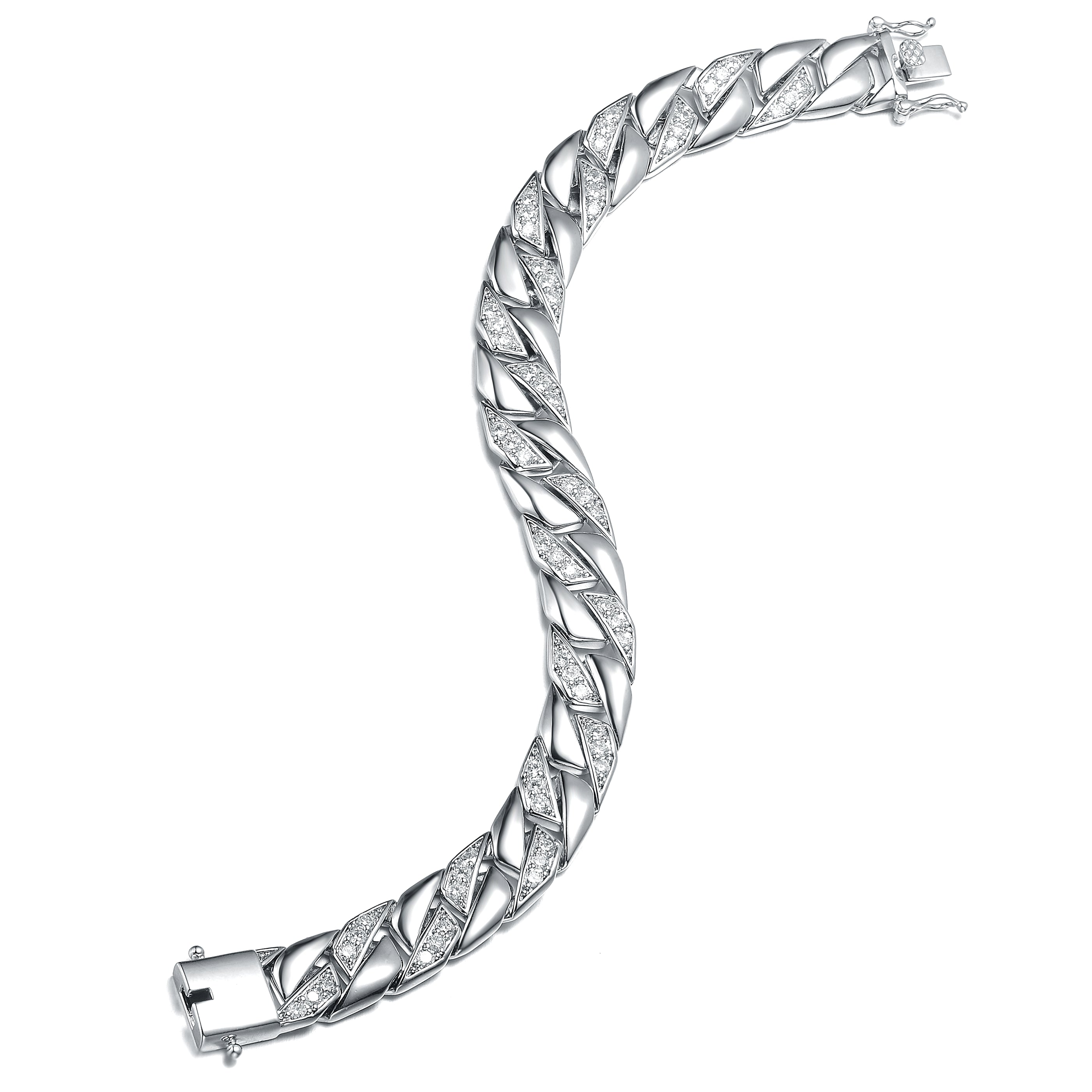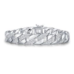 Make a standout style statement with this shimmering braided Cuban link bracelet, finished with a layer of round, diamond-like cubic zirconia for a striking iced-out look. Crafted in sterling silver and offered in both Rhodium and Gold-plated options, it features a secure hidden box clasp with dual figure-eight safeties for added peace of mind.