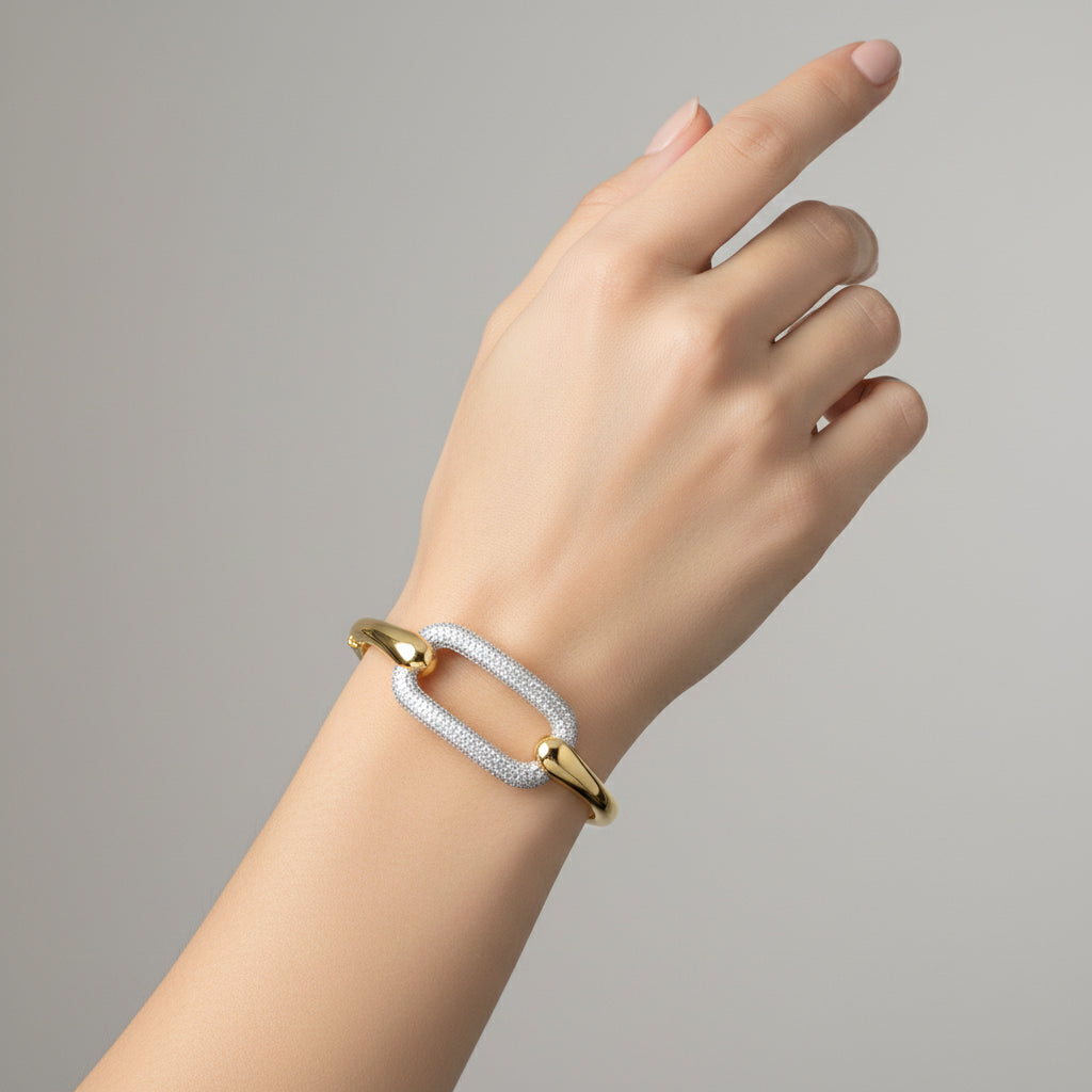 Pompidou French Pave Geometric Link Bangle Bracelet