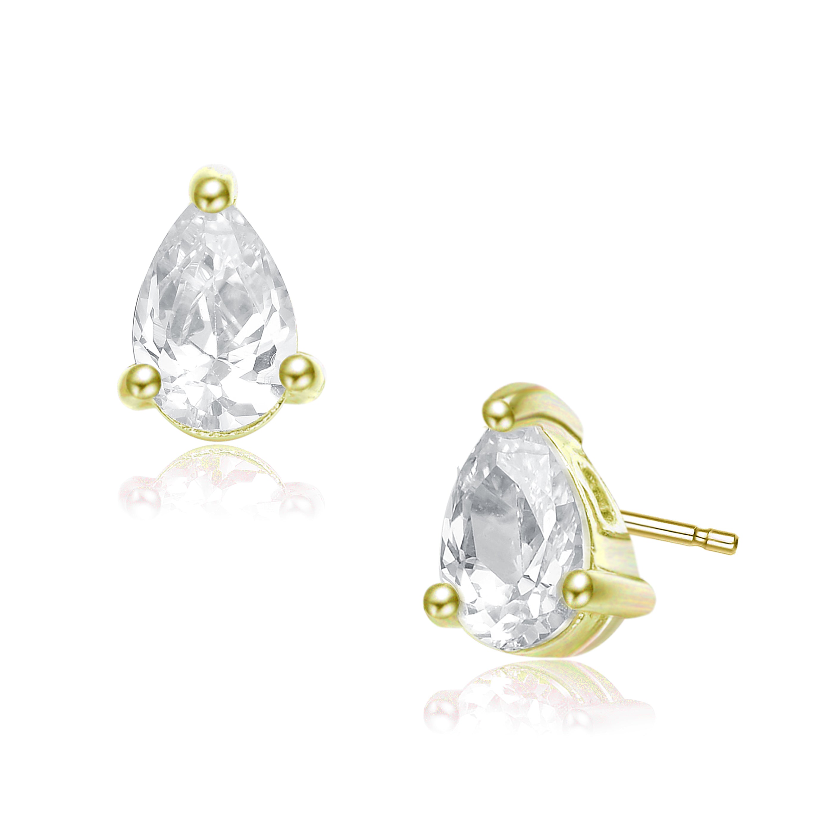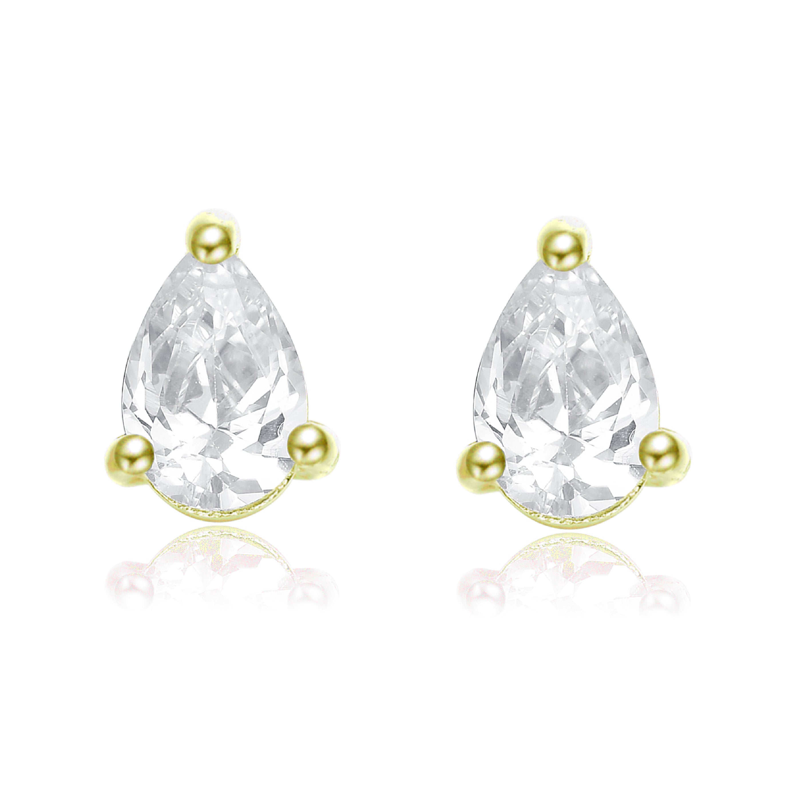 These lovely studs are perfect for any occasion. Each set features a white pear shaped cz stone surrounded by gold plated sterling silver.
