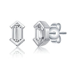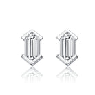 Sterling Silver Cubic Zirconia Baguette Geometric Stud Earrings. The classic stud earrings get a modern twist with a unique geometric v-shaped top and architectural influence! These beautiful sterling silver earrings feature shimmering baguette cut cubic zirconia solitaire stones in a striking style, giving them added fire and prestige as they nestle on the earlobes with modern elegance. Butterfly backs keep them secure, making them easy to remove.