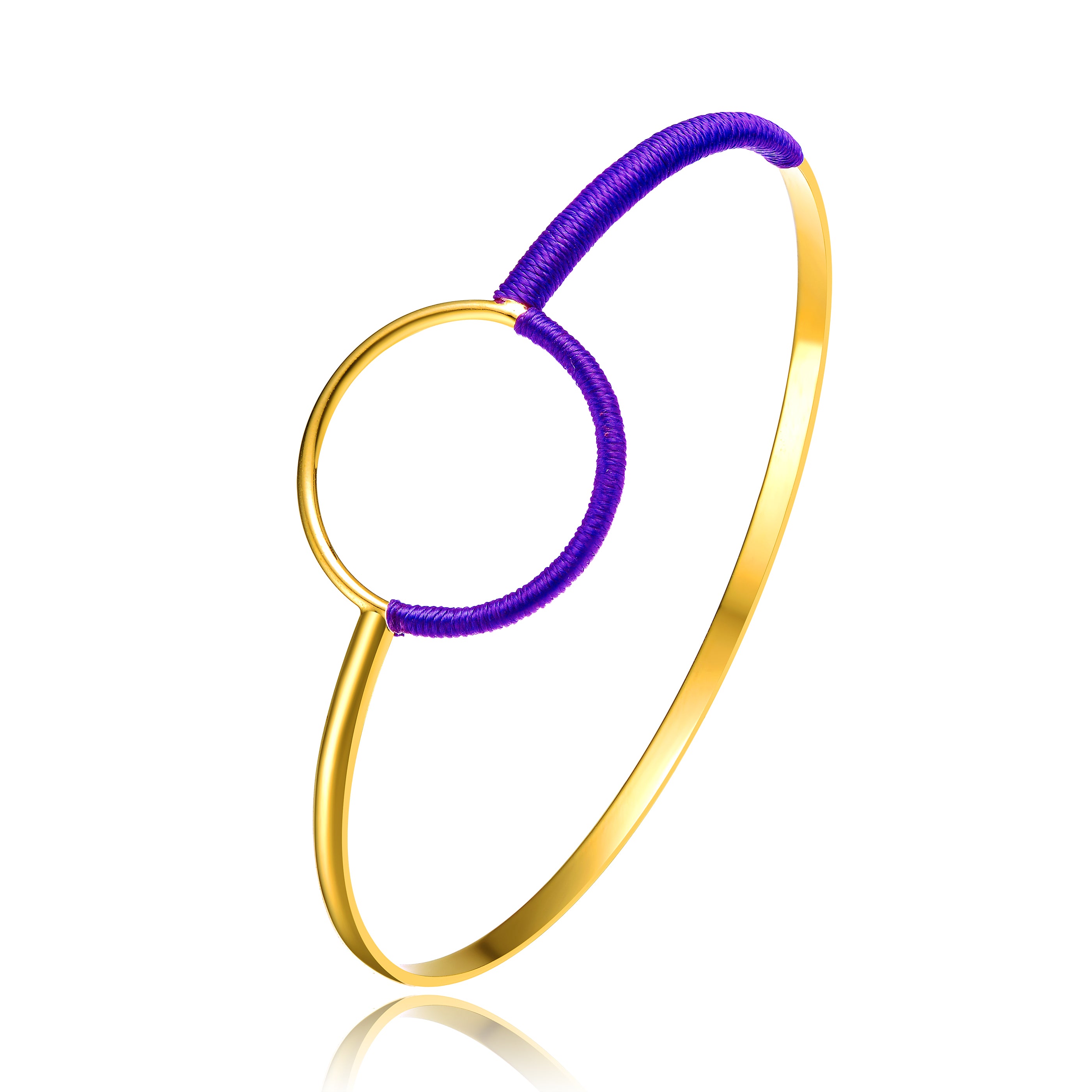 14k Yellow Gold Plated Thread Circle Bangle Bracelet for Teens. Discover our exquisite 14k yellow gold plated thread circle bangle bracelet for teens, available with a choice of amethyst orchid or clear thread circle. Add a touch of elegance to your style today.