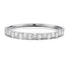 This bangle bracelet features a simple design that consists of two rows of clear emerald cubic zirconia that is separated with clear round cubic zirconia. This bangle bracelet is set in .925 Sterling silver with rhodium plated. This bangle bracelet is perfect for any events in daytime or night.