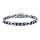 This classy .925 Sterling silver tennis bracelet is made out of clear and sapphire blue radiant cubic zirconia set in bar at skipped intervals. Crafted of .925 Sterling silver and secures with a box clasp. makes a great gift as well.