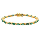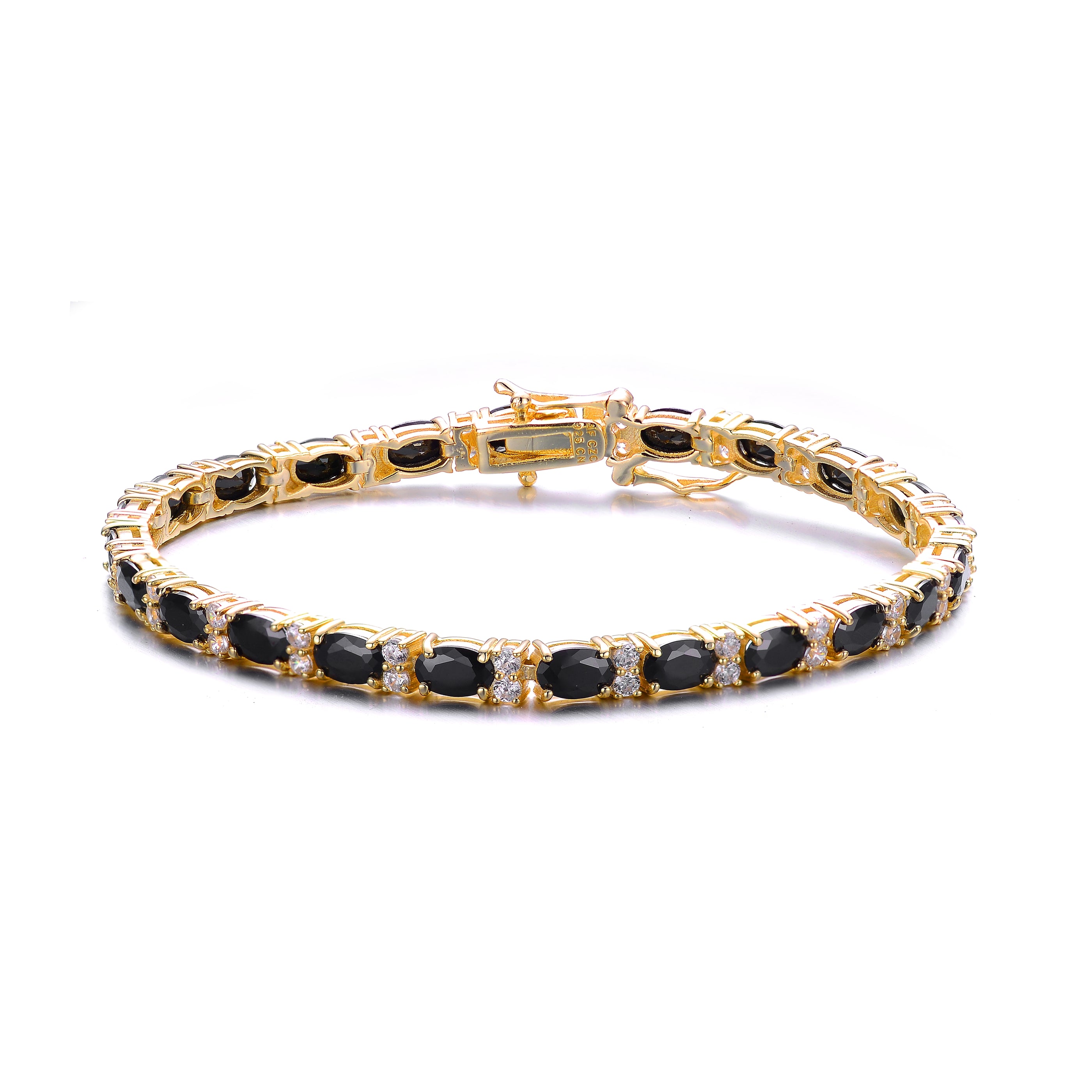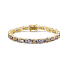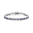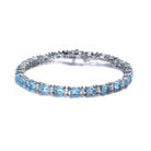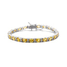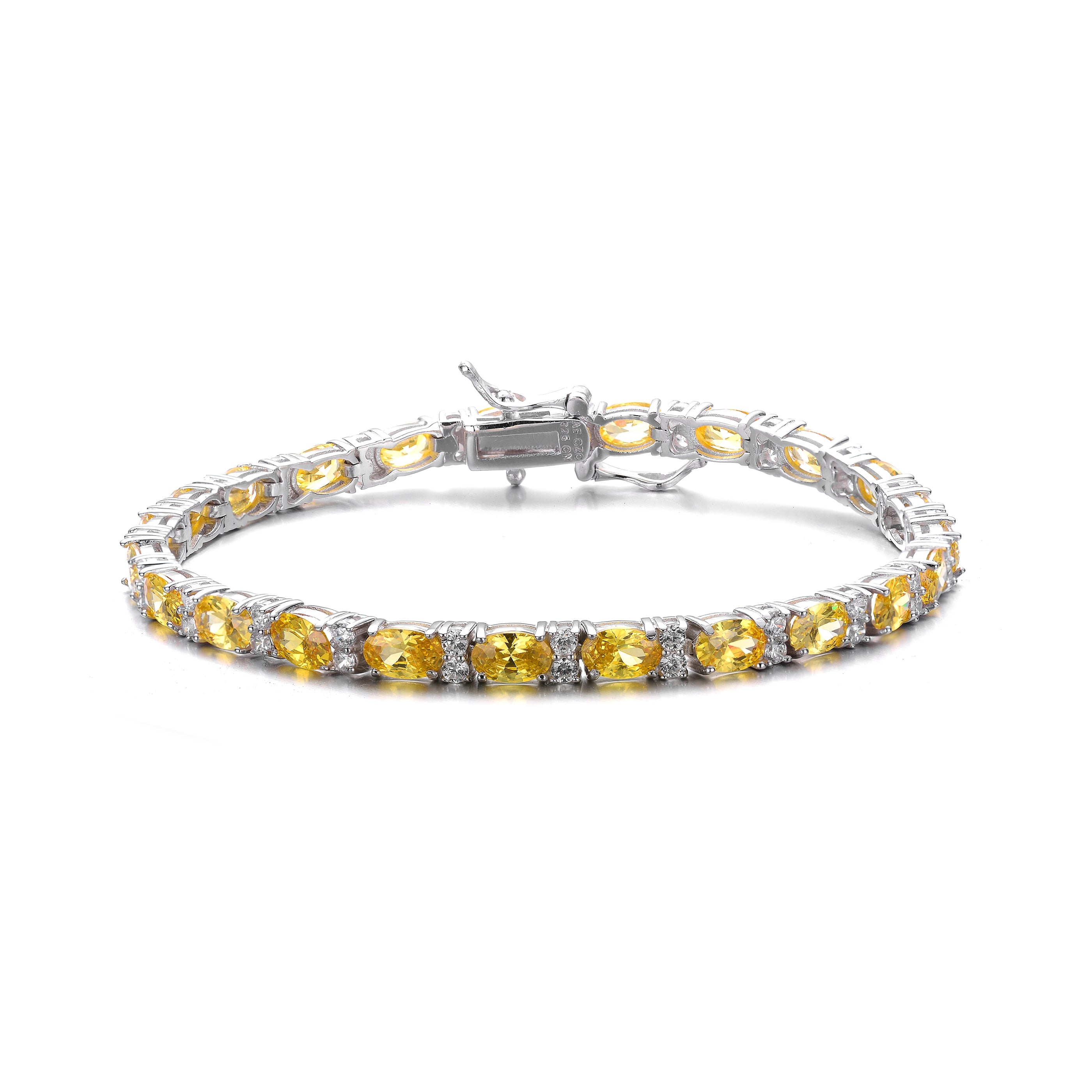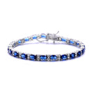 Add a touch of elegance to your wrist with this classy tennis bracelet. Crafted in sterling silver, it showcases a beautiful array of colored stones, exuding a timeless charm. Elevate your style with this elegant and refined accessory.