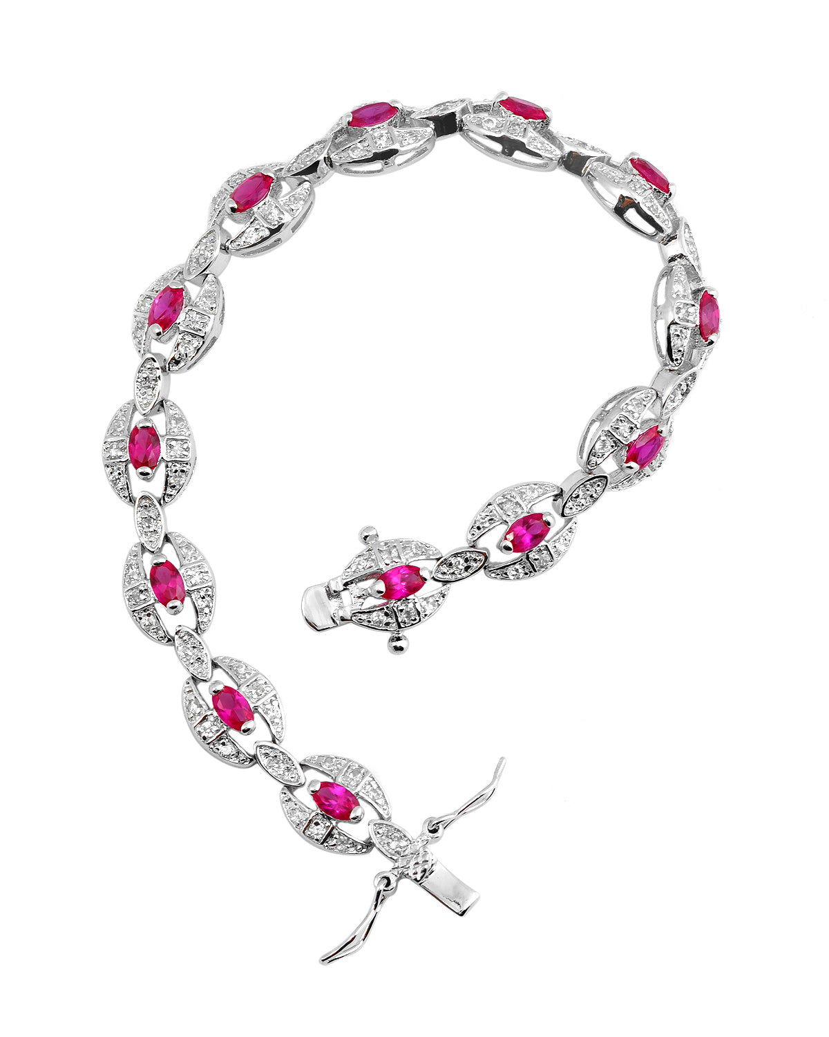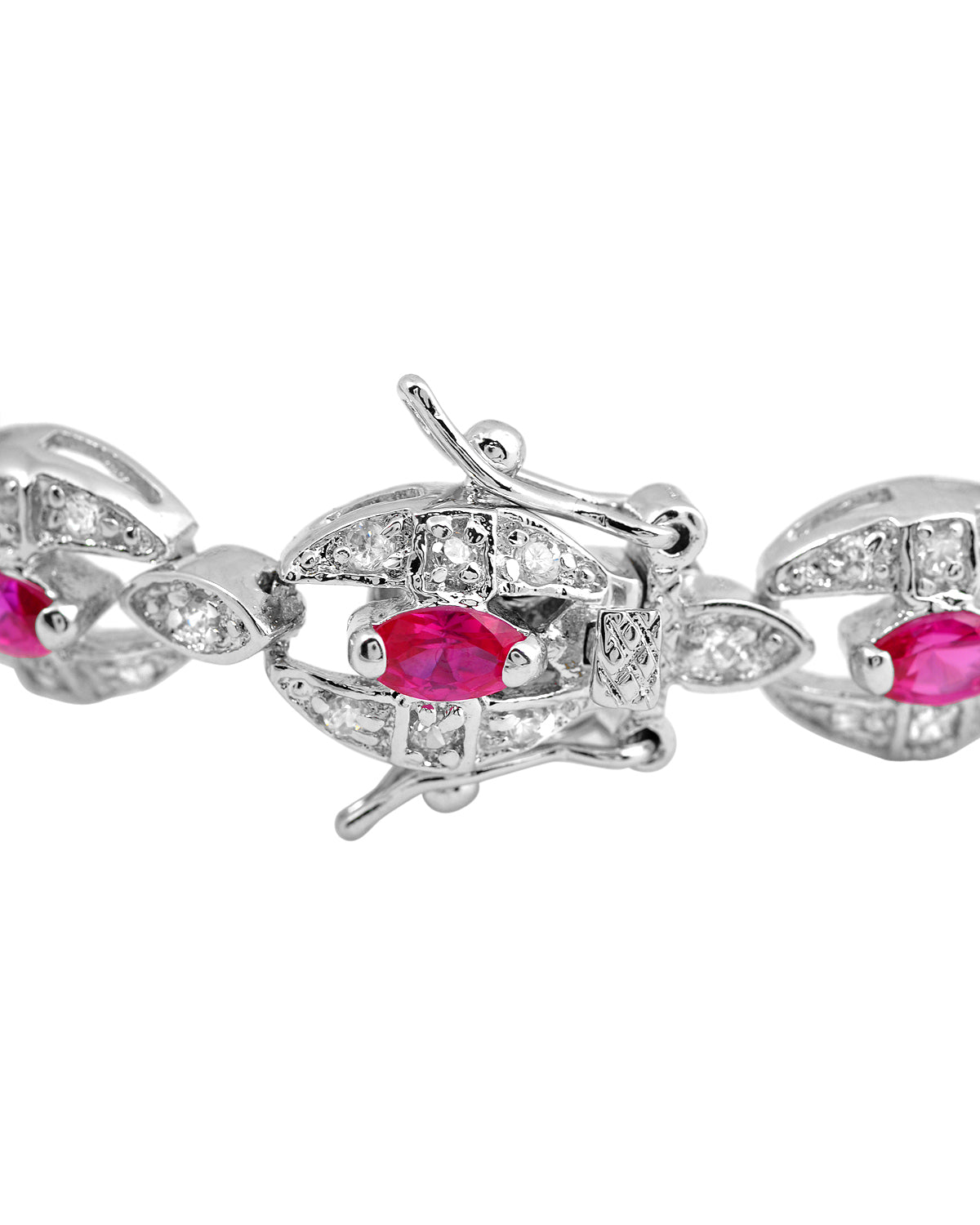 Red cubic zirconias are accented by white ones on this fashion link bracelet. This jewelry is crafted of sterling silver in a polished finish.Whether worn for a special occasion or as a statement piece, it’s sure to turn heads and capture attention.