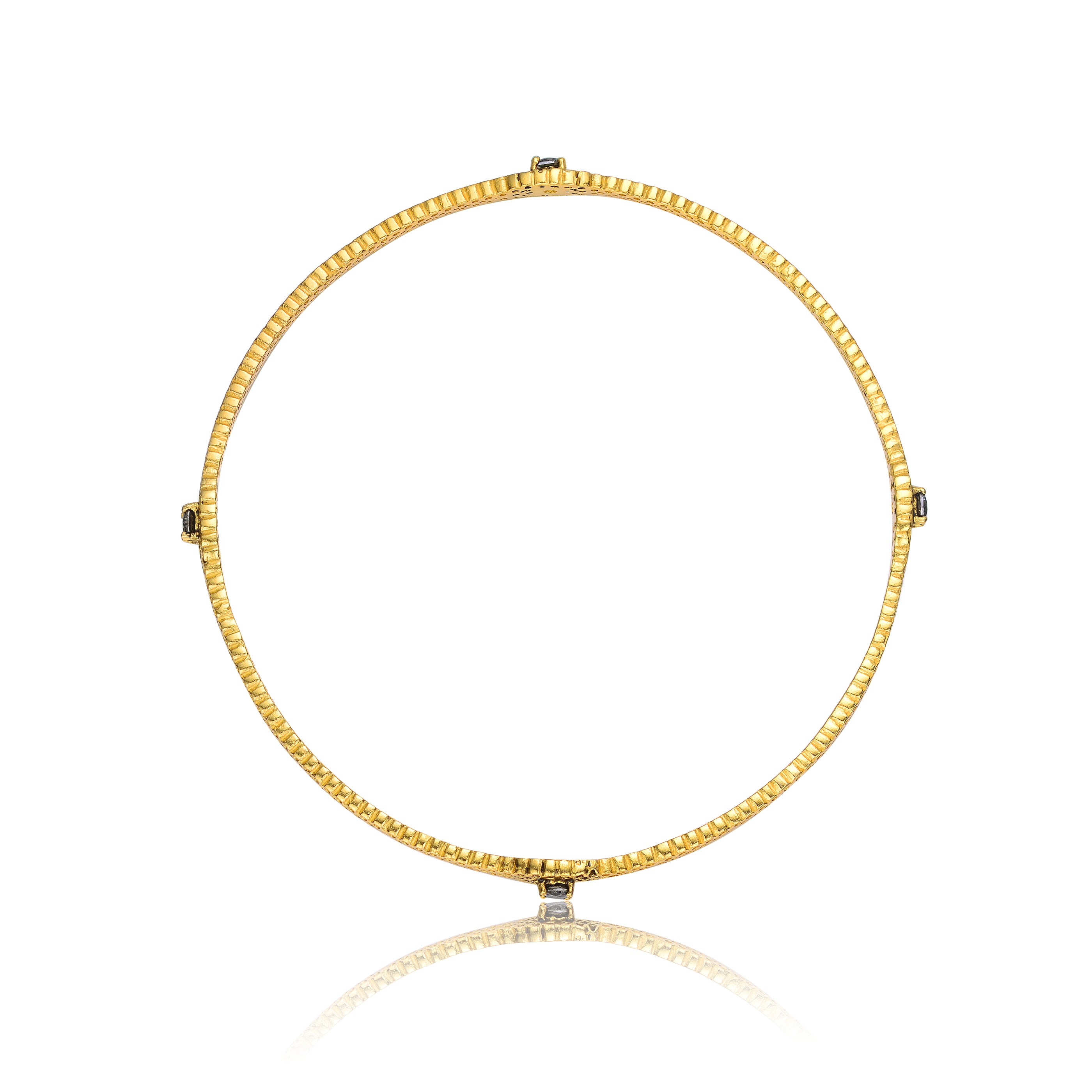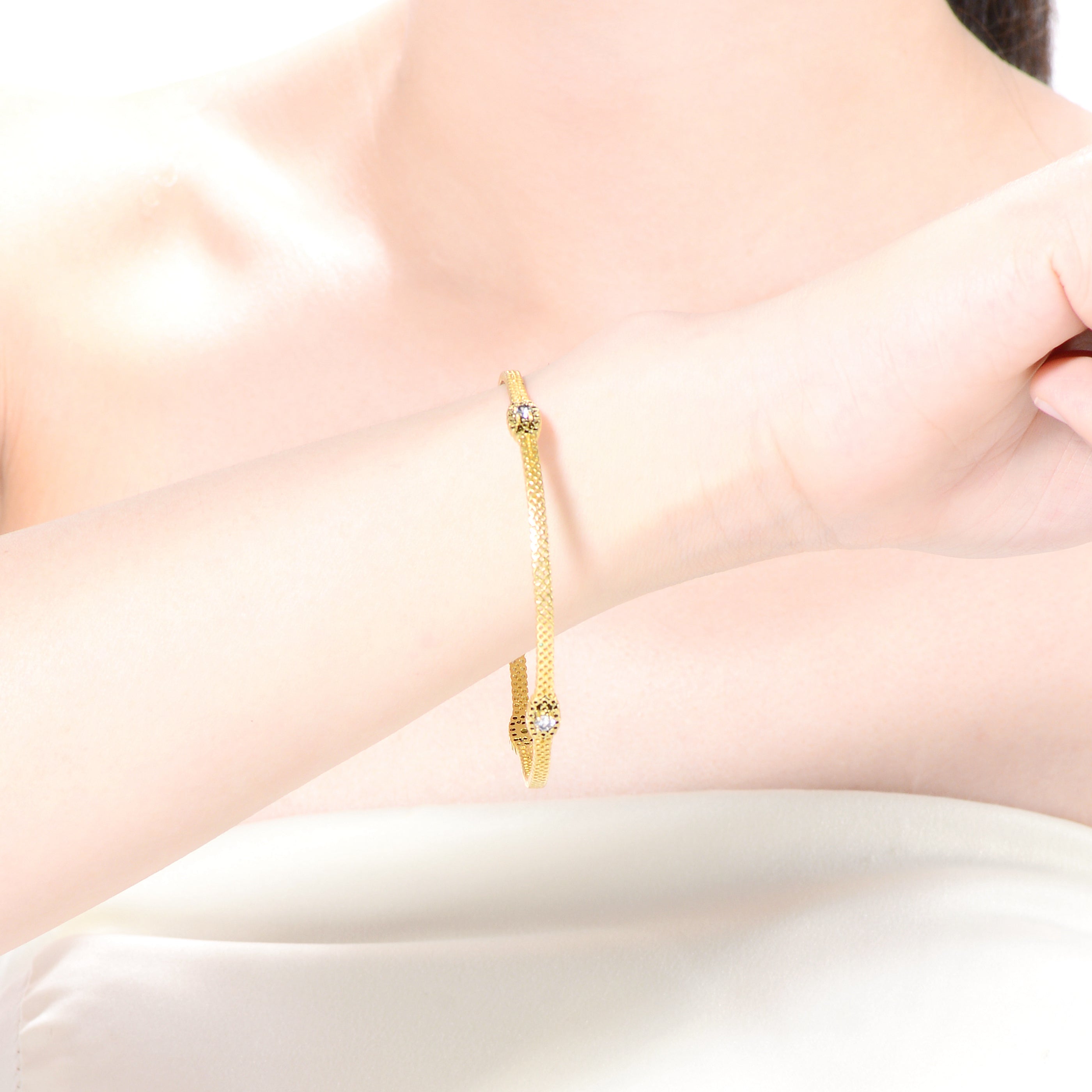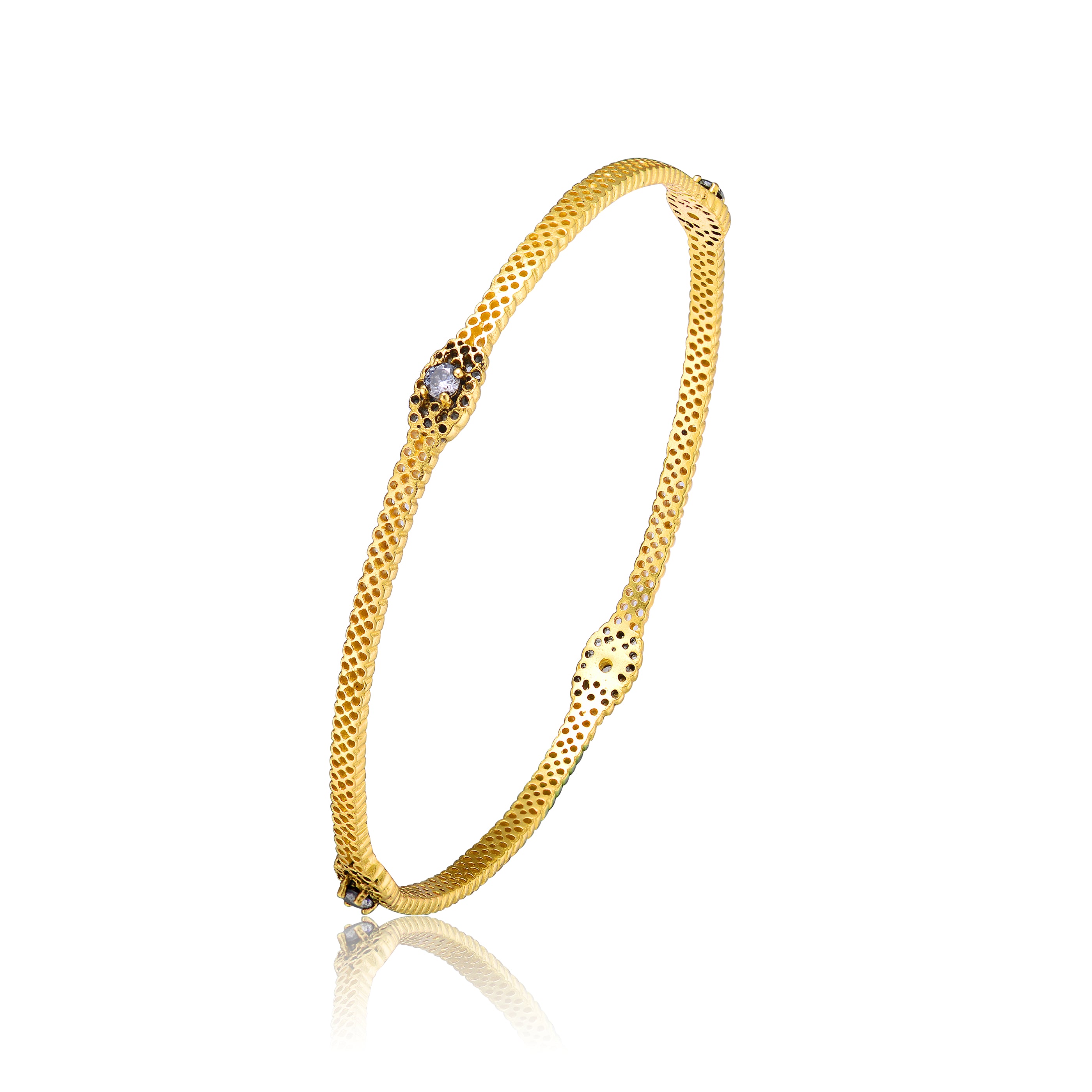 You will be right on trend when wearing this gold overlay bangle bracelet. For an added degree of sparkle it also features cubic zirconia accents.
