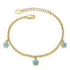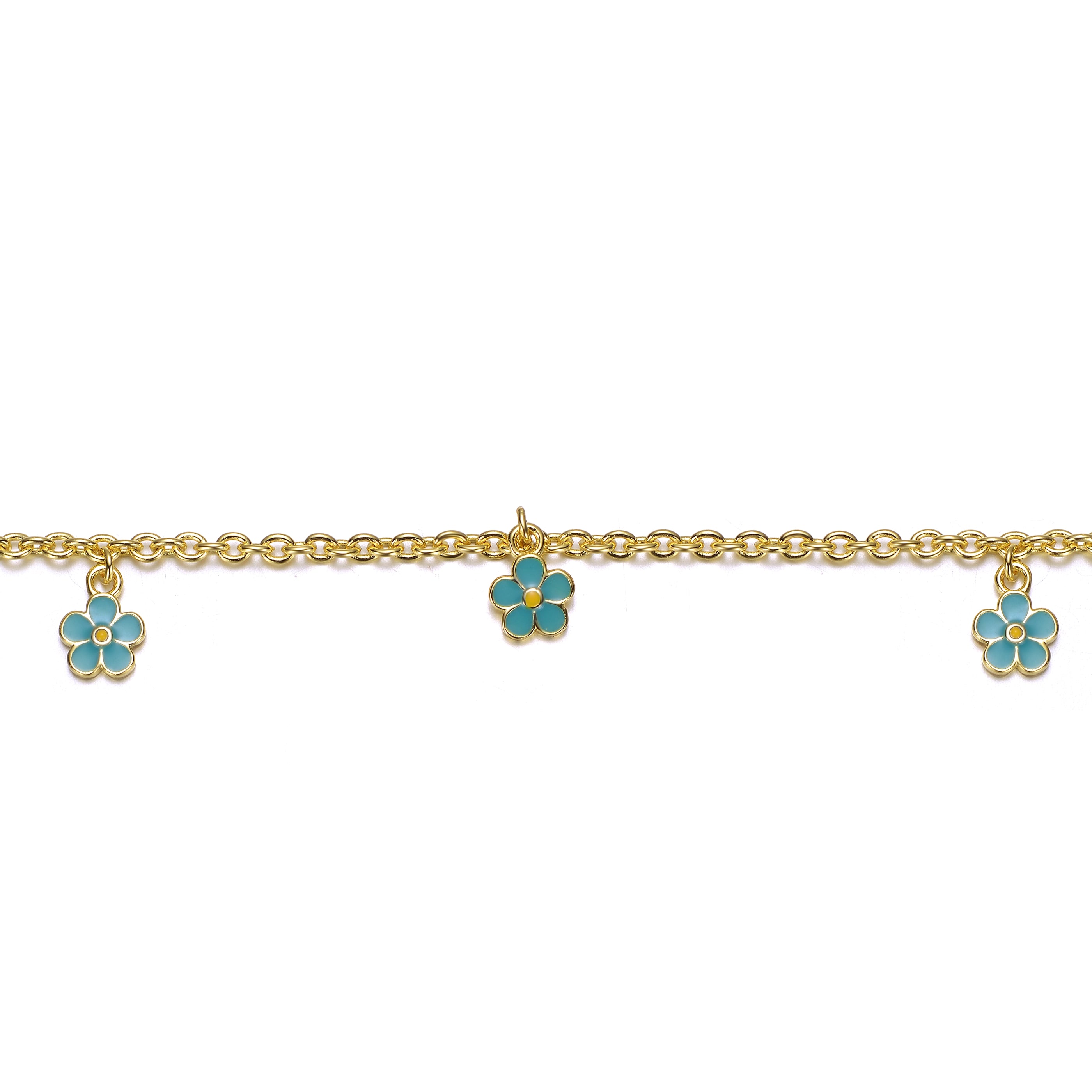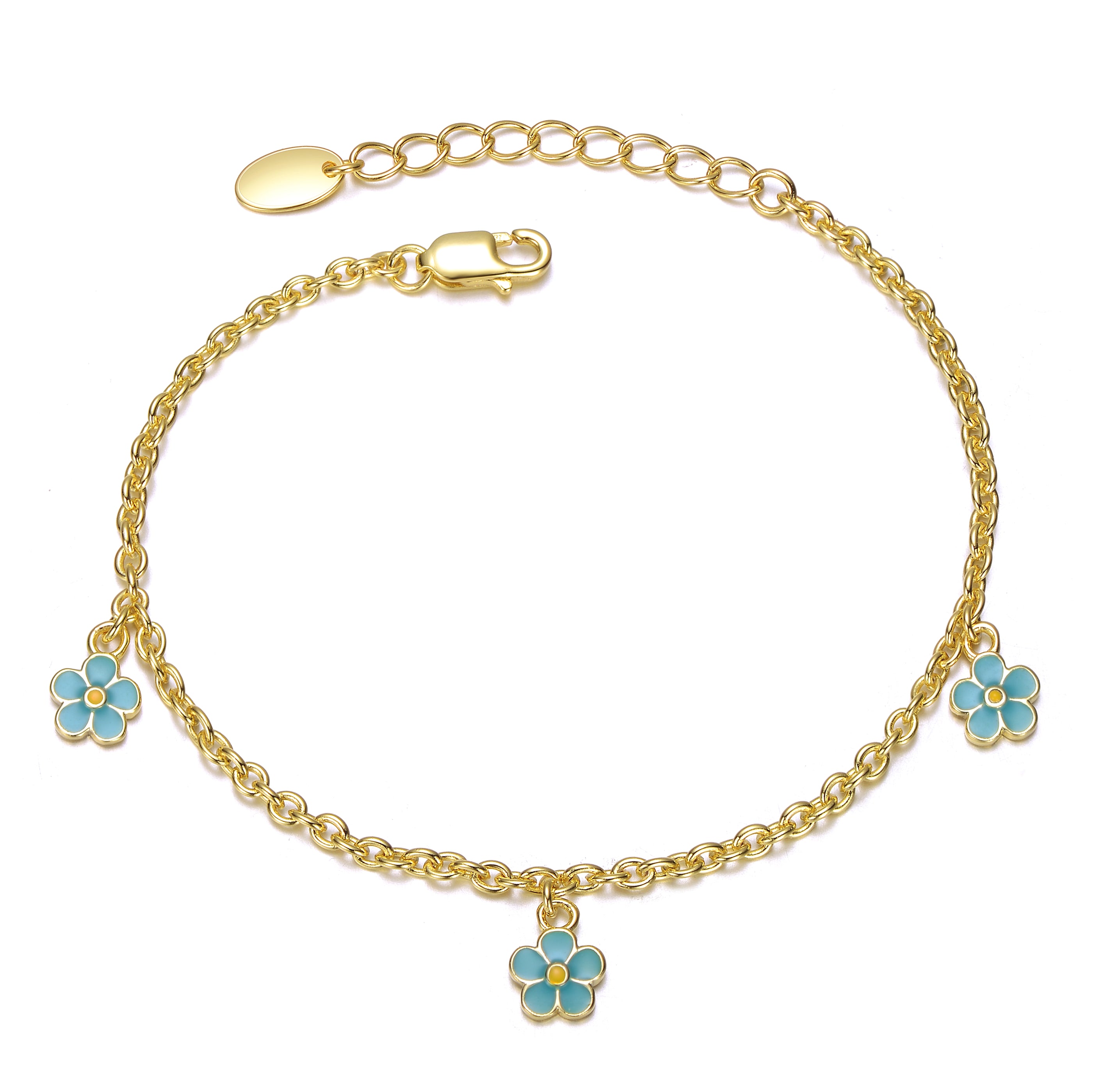 This super-sweet sterling silver 14K gold plated dainty link bracelet is ideally suited for giving as a gift to your little loved ones for birthdays, graduations, holidays, meaningful occasions, or just because. Showcasing adorable bright flowers with yellow enamel in the middle, this bracelet’s bright shine draws attention to its chic design. It features three flower charms and is adjustable, measuring 5.5+1 inches. The bracelet is secured with a lobster clasp and is available in fuchsia pink and Tiffany blue.