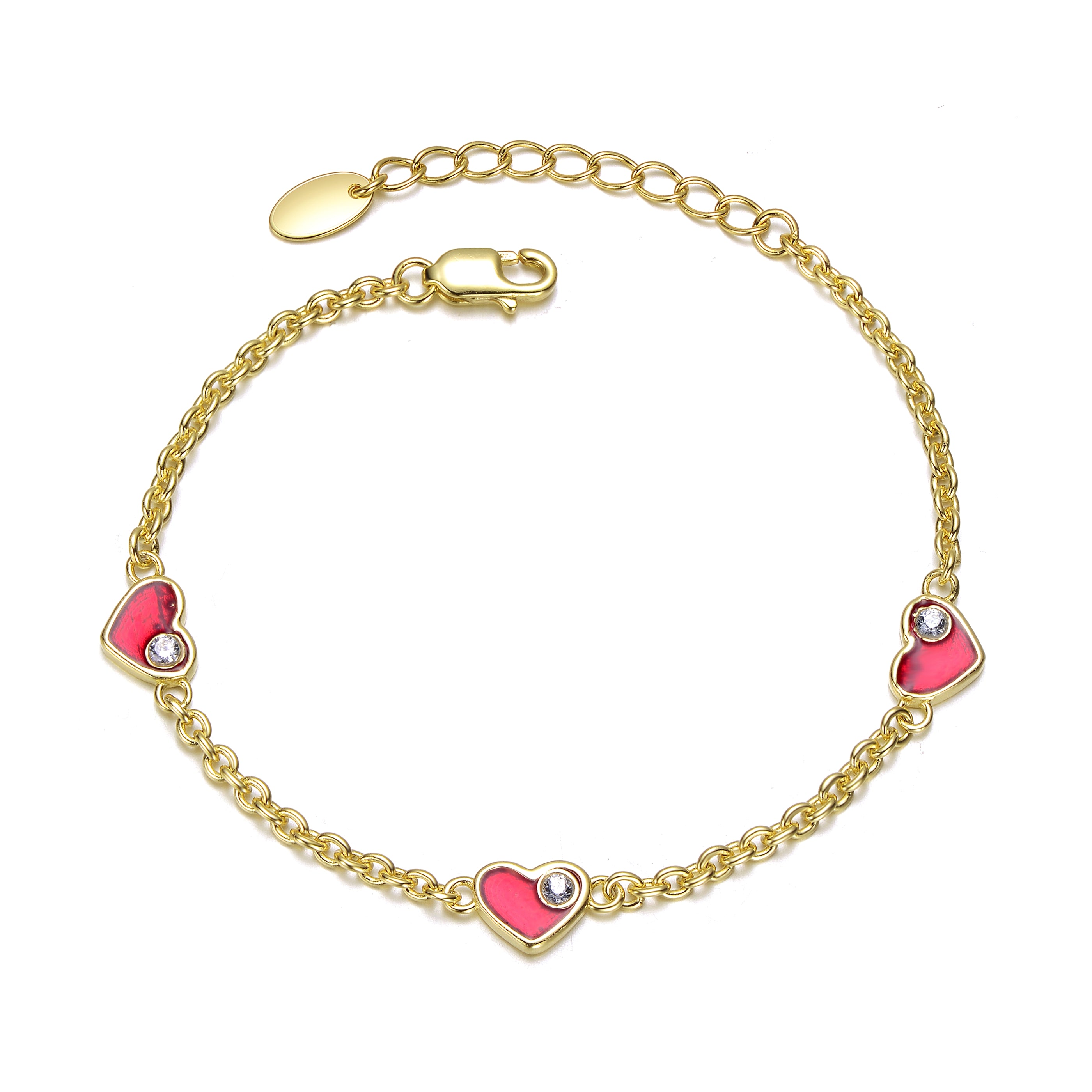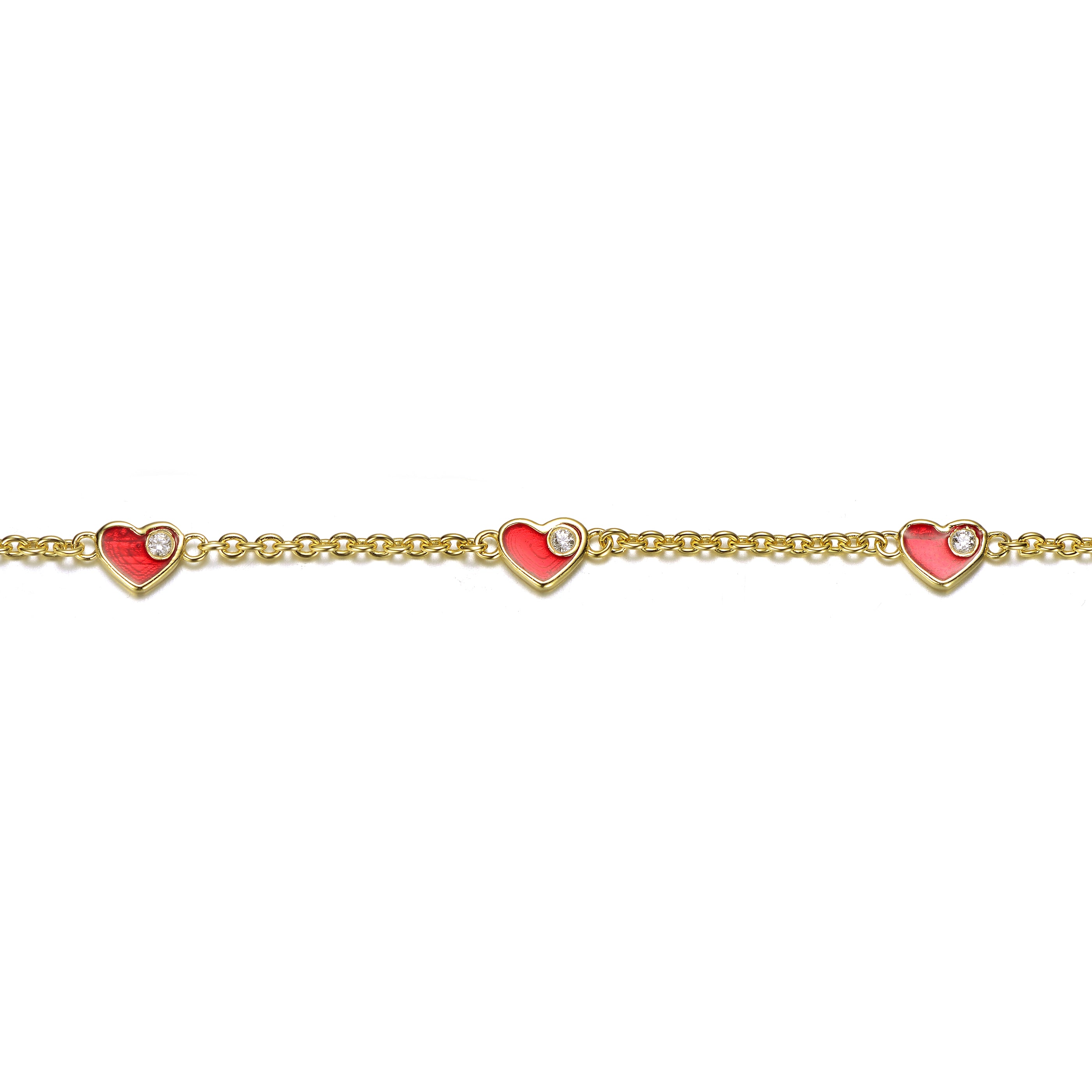 Kids/Teens 14K Gold Plated Red Heart & Cubic Zirconia Link Bracelet