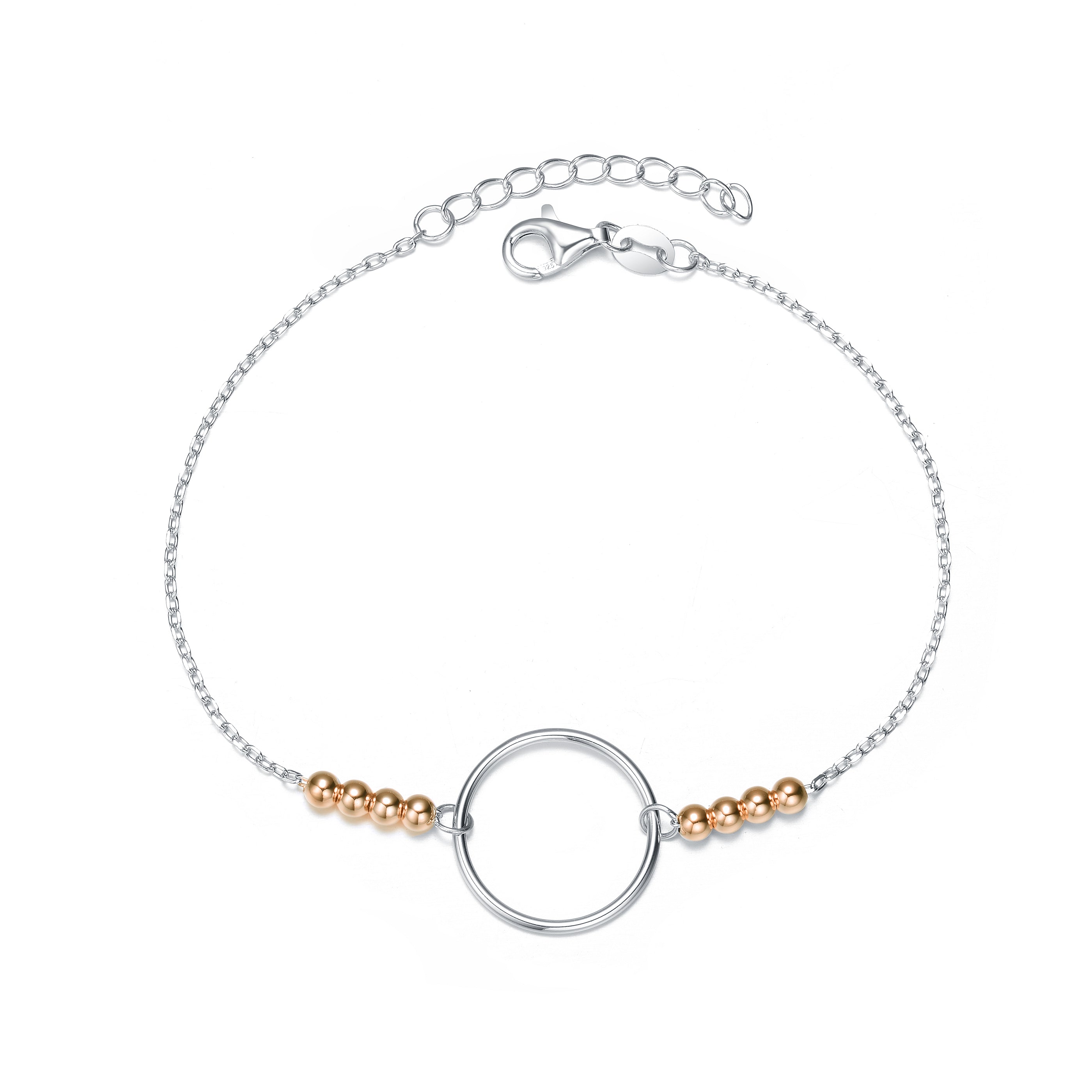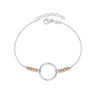 Elegant Sterling Silver Two-Tone Halo Bracelet. This sophisticated bracelet features round Silver and Rose Gold plated metals. Crafted of .925 Sterling Silver, the jewelry is secured with a spring clasp. This piece is perfect on a semi-formal event. The jewelry also makes a great present for an ocassion.