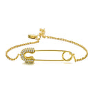 Stylish Sterling Silver 14K Gold Plated Clear Cubic Zirconia Pin Adjustable Bracelet. This stylish adjustable bracelet features interesting design made out of safety pin as charm. It is accented with small clear round cubic zirconia stones set in pave setting and connected on both sides to the chain. Crafted of Sterling Silver with 14K Gold Plating and it is secured with lobster claw. Perfect piece of jewelry for stylish combinations. This item also makes a sensational gift.