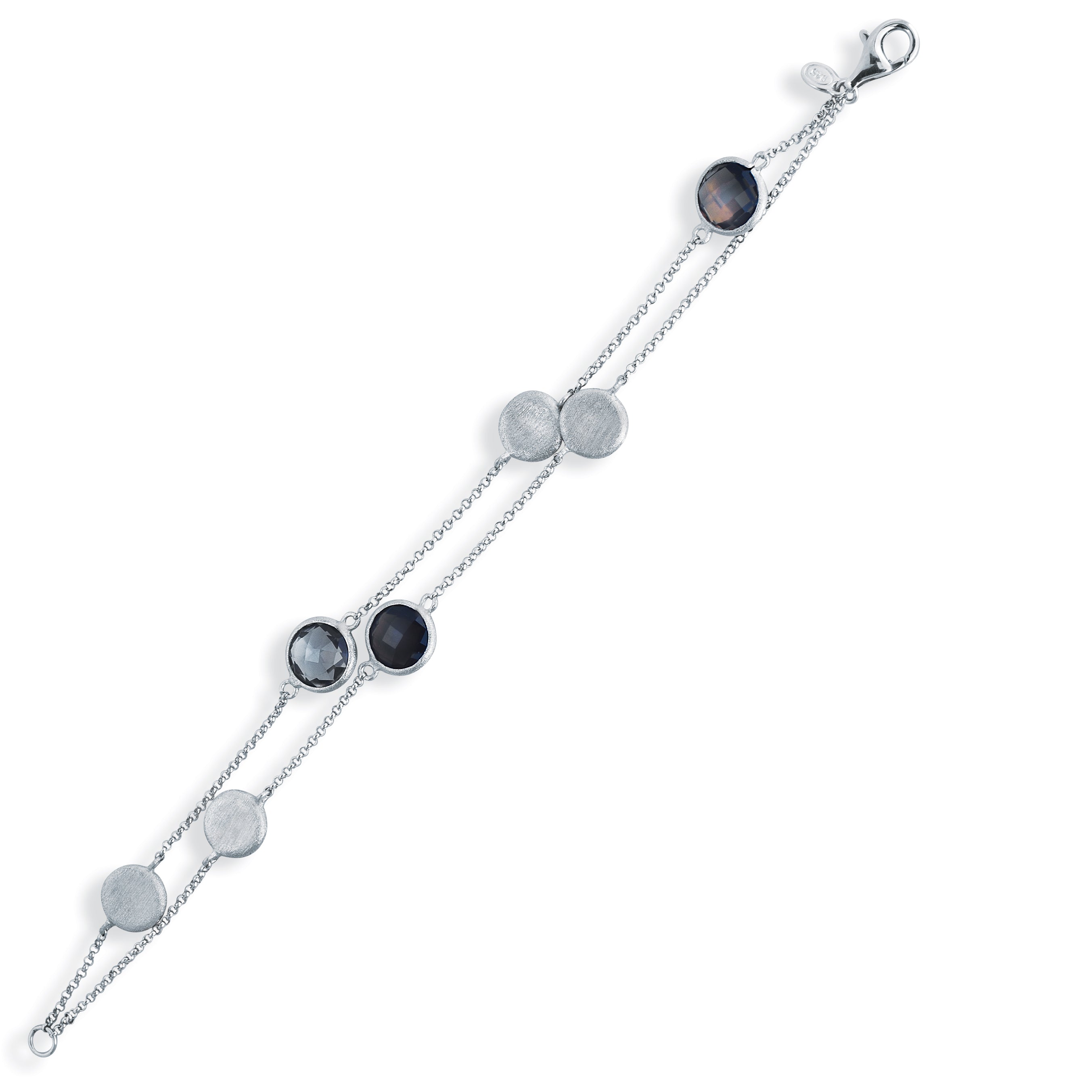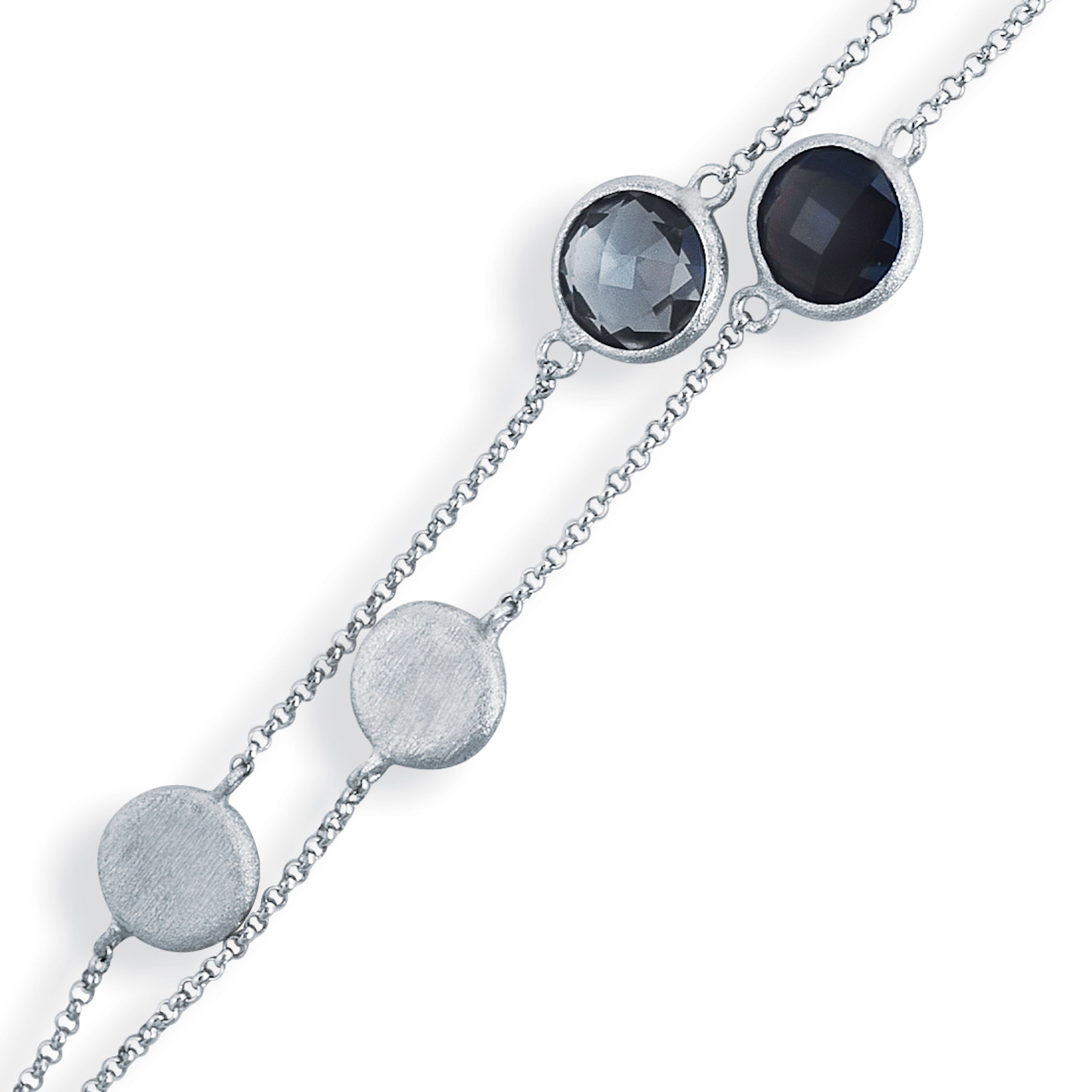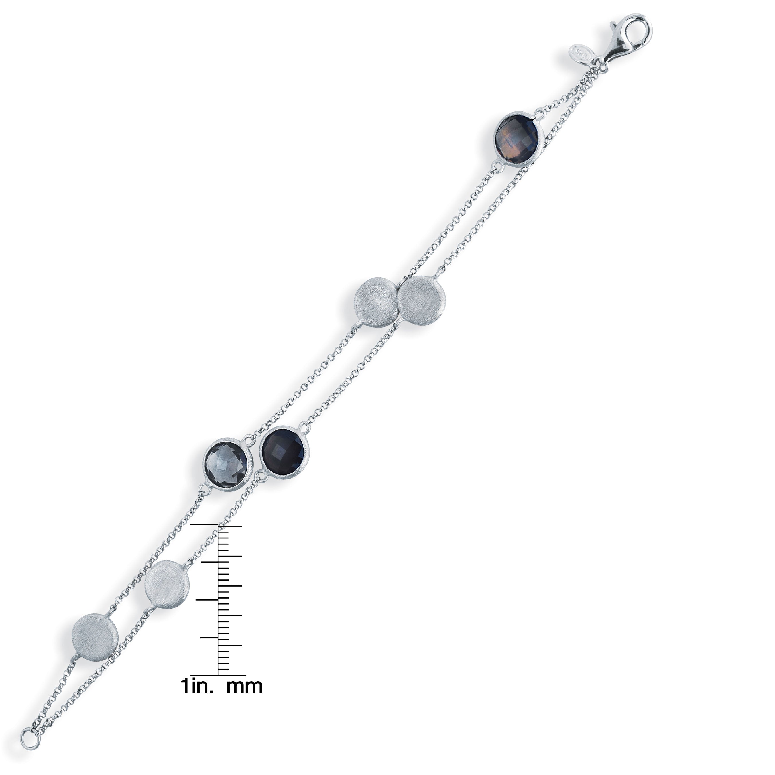 This bracelet interchanges silver balls with blue cubic zirconia stones for a chic style. It is the quintessential piece for any collection.