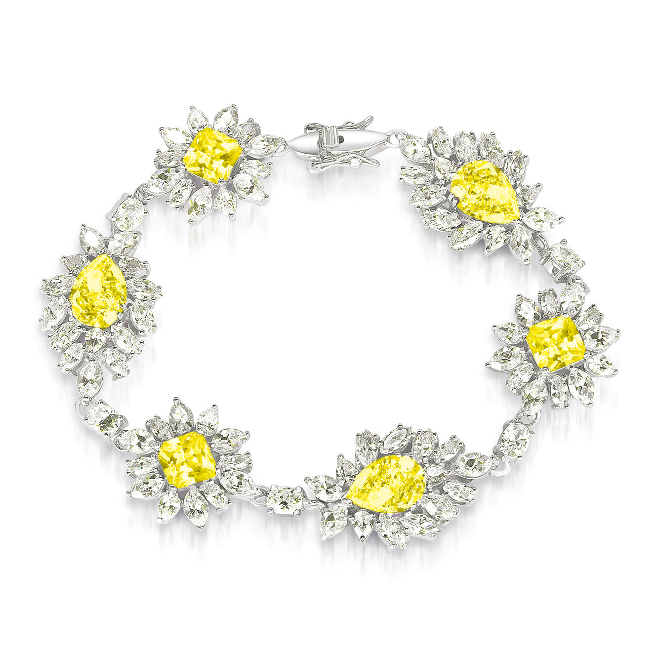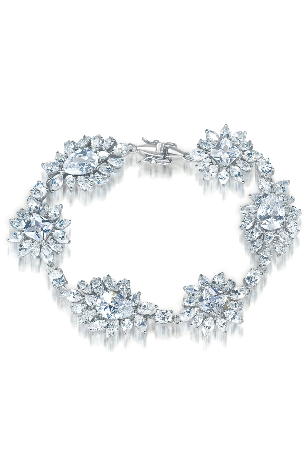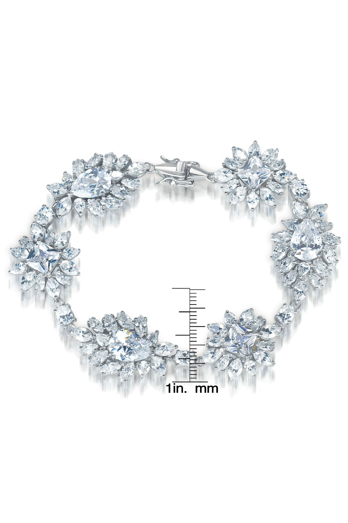 Sterling Silver Cubic Zirconia Bracelet With Flower Motif