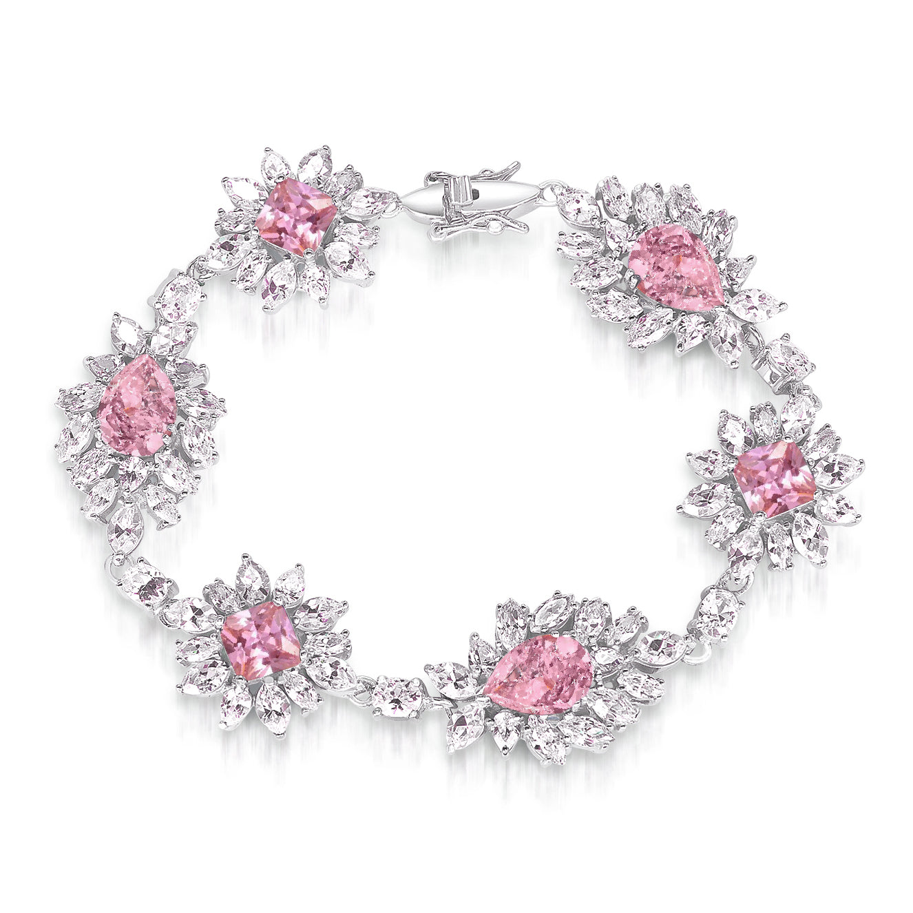 Made with a distinctive flower motif, this lovely bracelet offers a fresh touch to any outfit. The clear stones bring memories of spring blooms any time of the year.