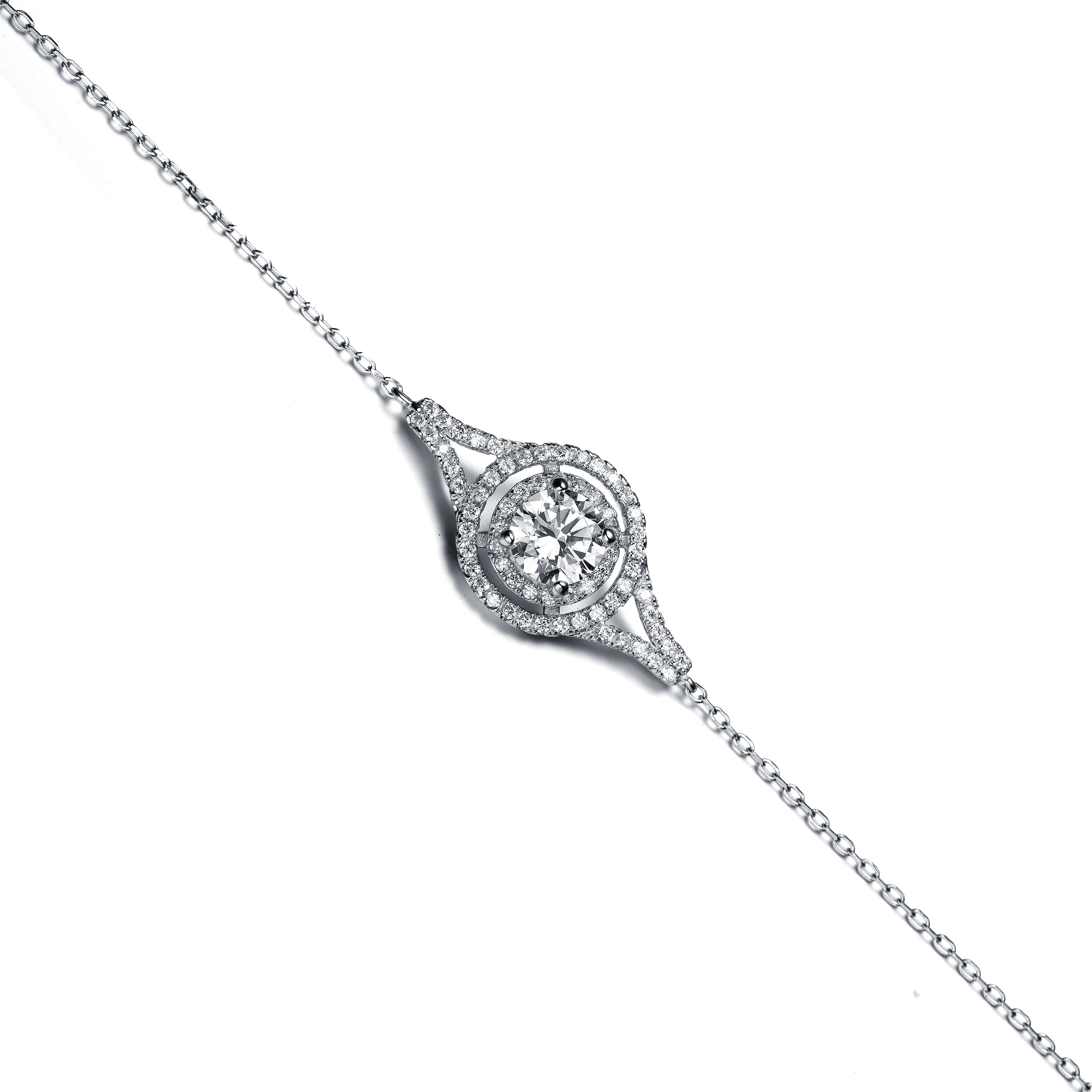 This sterling silver bracelet is sure to capture all the attention with its large clear cubic zirconia solitaire. Great for black tie events.