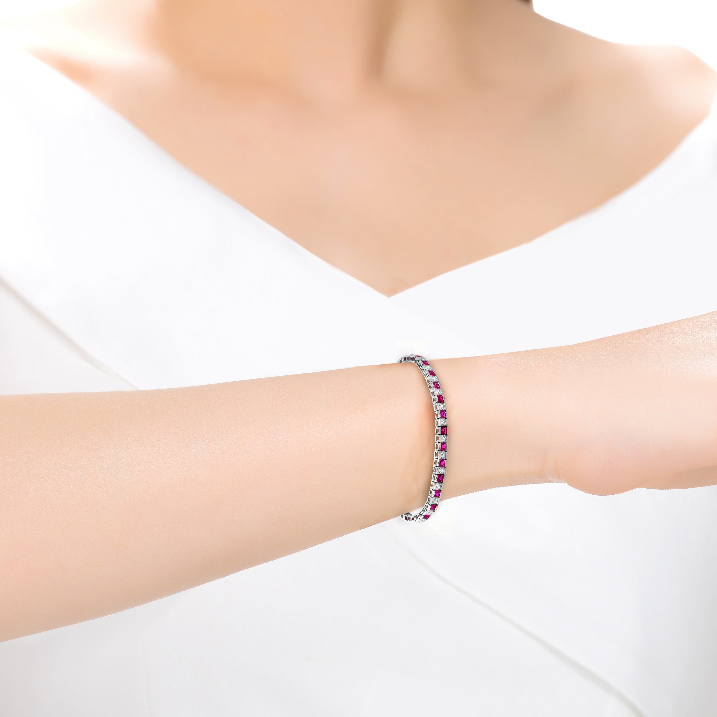Sterling Silver Square Cubic Zirconia Stylish Tennis Bracelet
