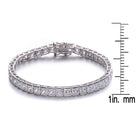 Sparkling Sterling Silver CZ Tennis Bracelet. Features square-cut cubic zirconia stones. Stylish and elegant bracelet. Perfect for adding glamour to any outfit.