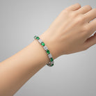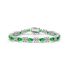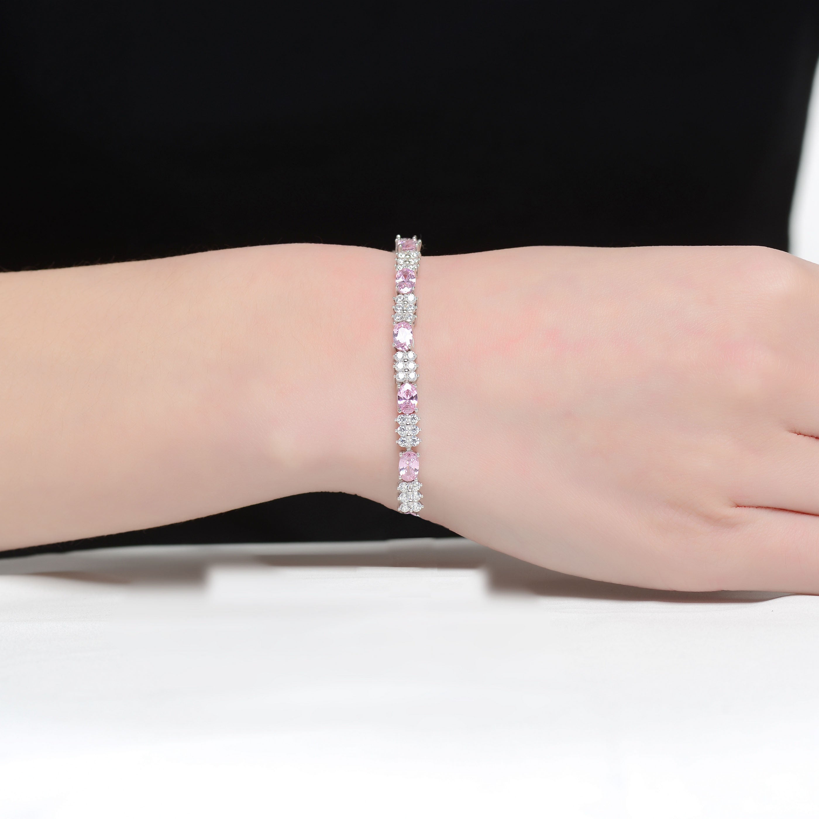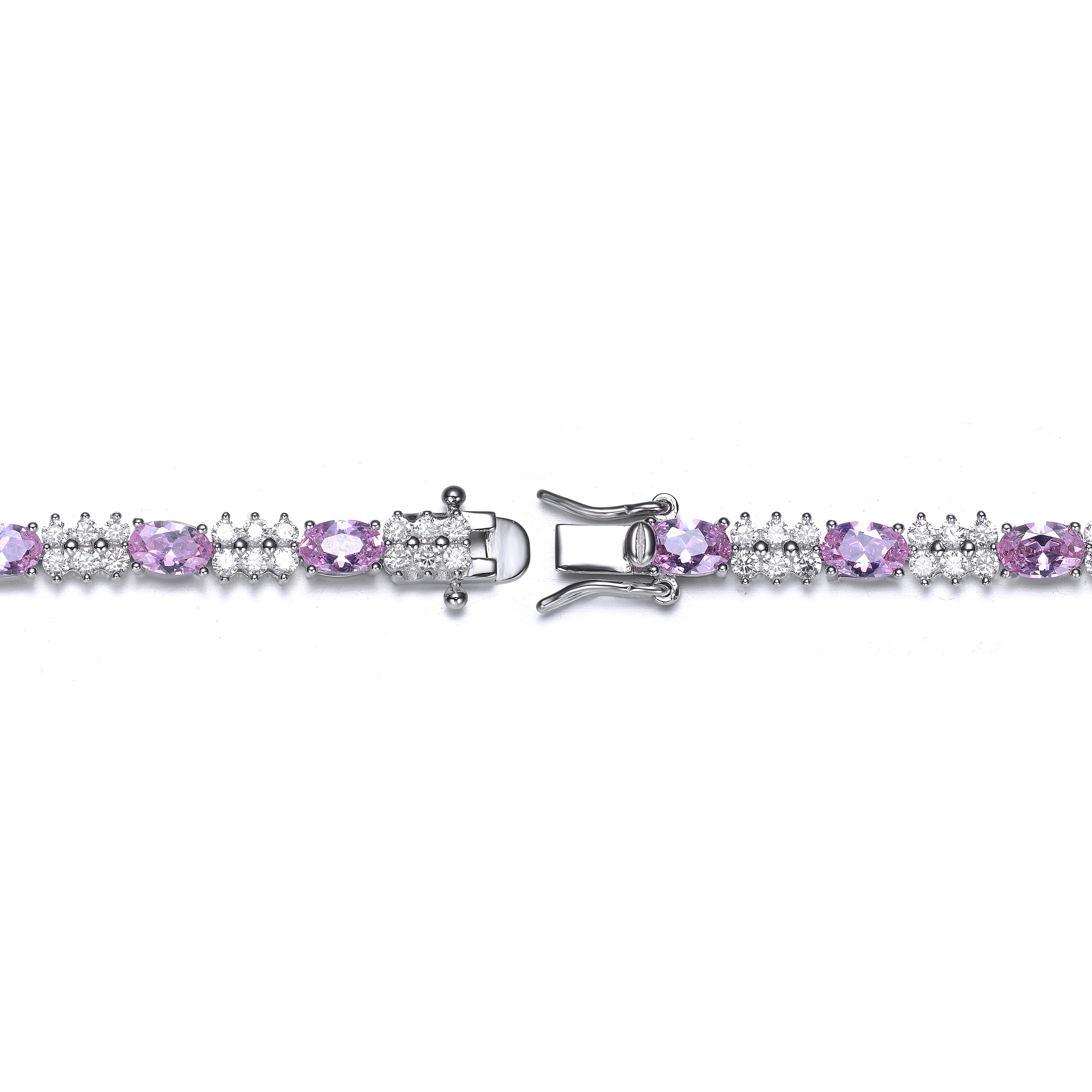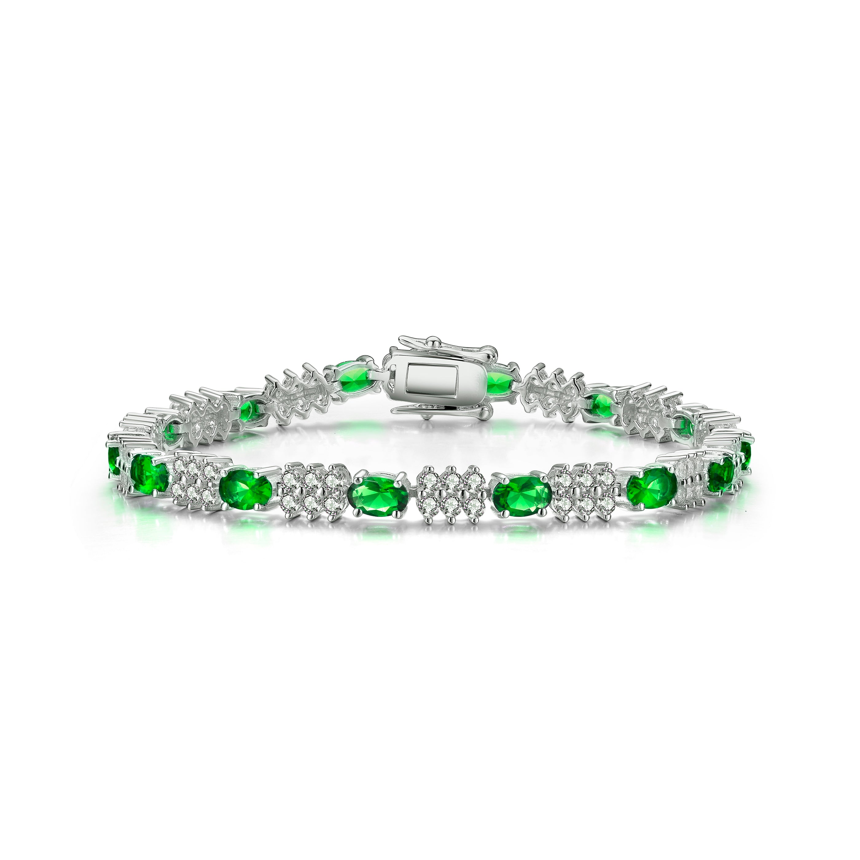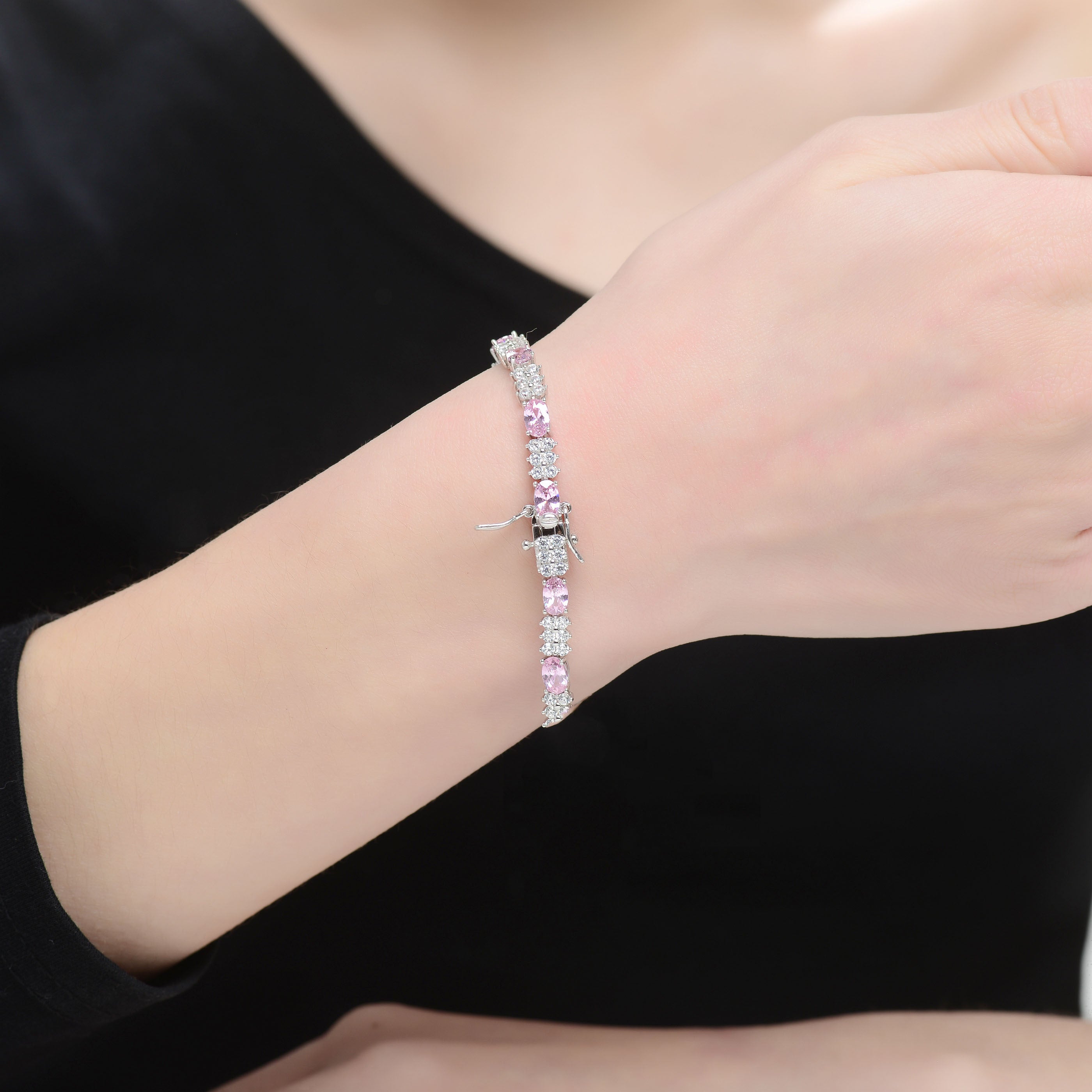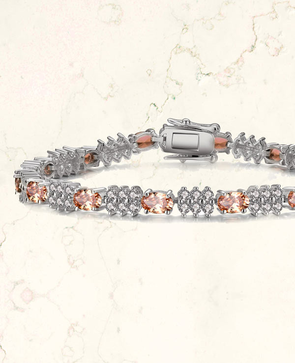 Go out in style with this gorgeous and delicate sterling silver design that is ideal for a night on the town. This piece feature multi colors stones that alternate with dazzling cubic zirconia and silver accents and secured with a delicate clasp closure. Available in Pink, Green, Blue, or White stone as well.