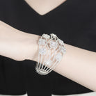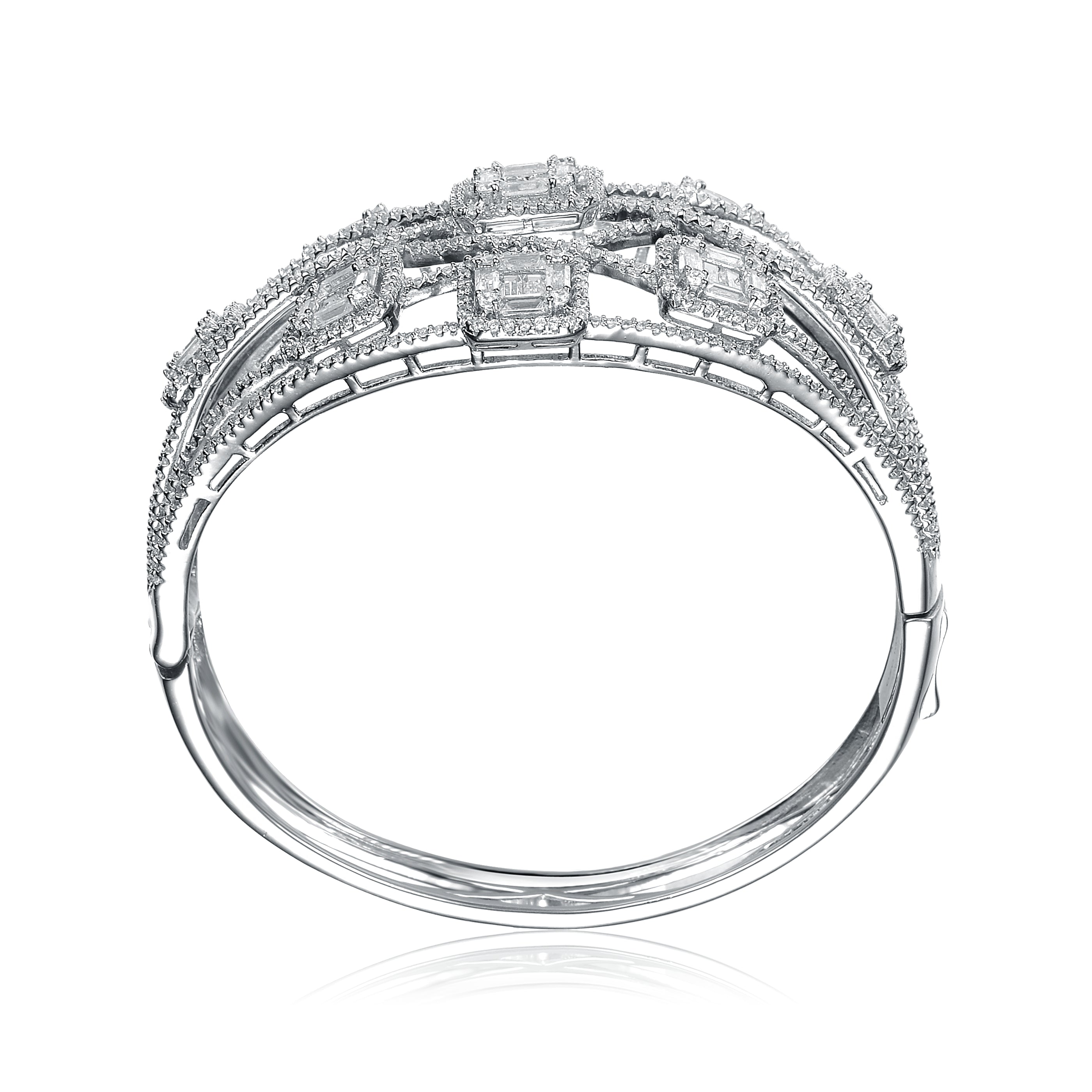 Beautifully crafted clear white cubic zirconia paved in alternating strings with square shaped gemstones accent. This bangle bracelet is made from .925 sterling silver that makes it more classy and elegant.