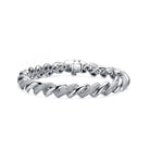Sterling Silver with Rhodium Plated Clear Round Cubic Zirconia Wavy Twisted Bracelet