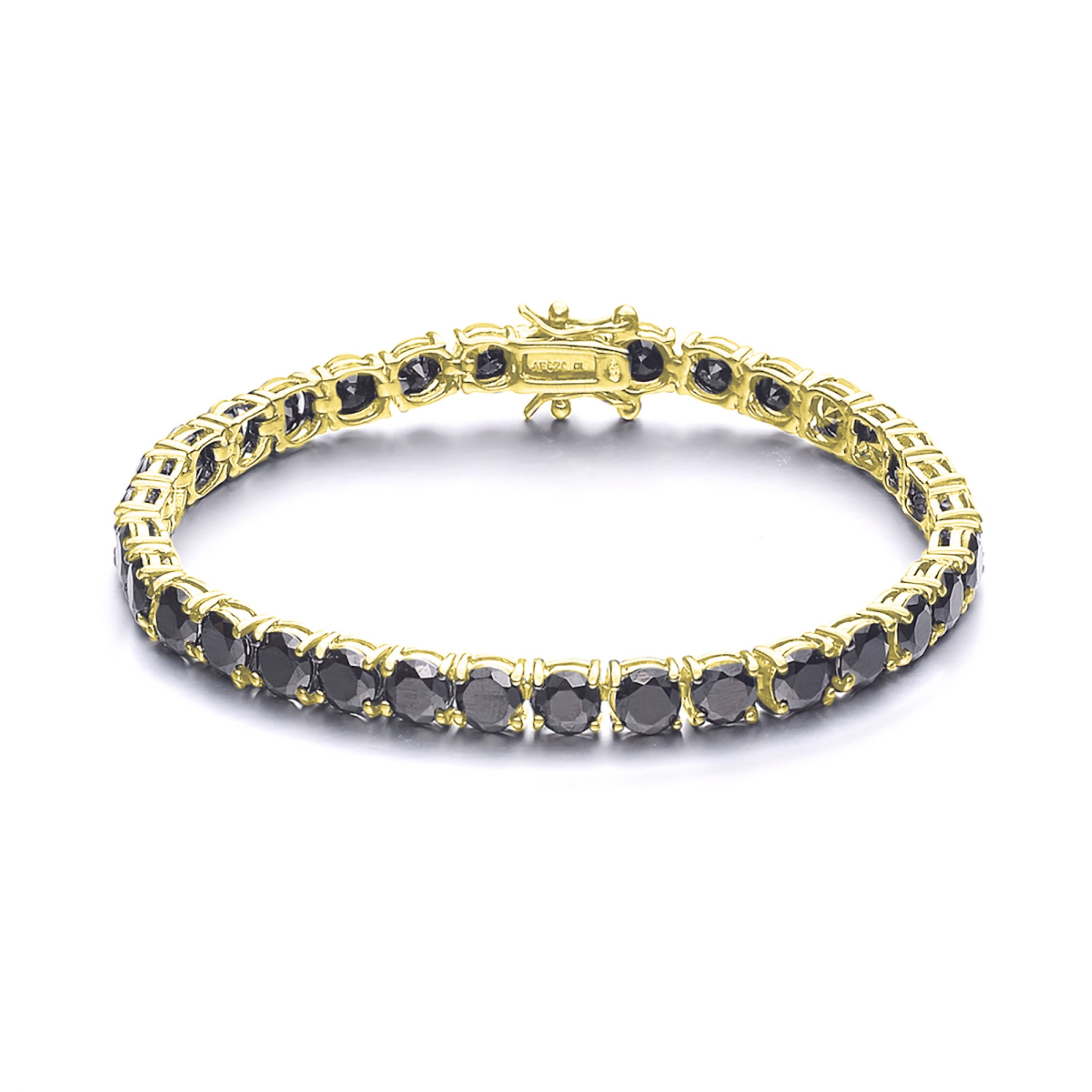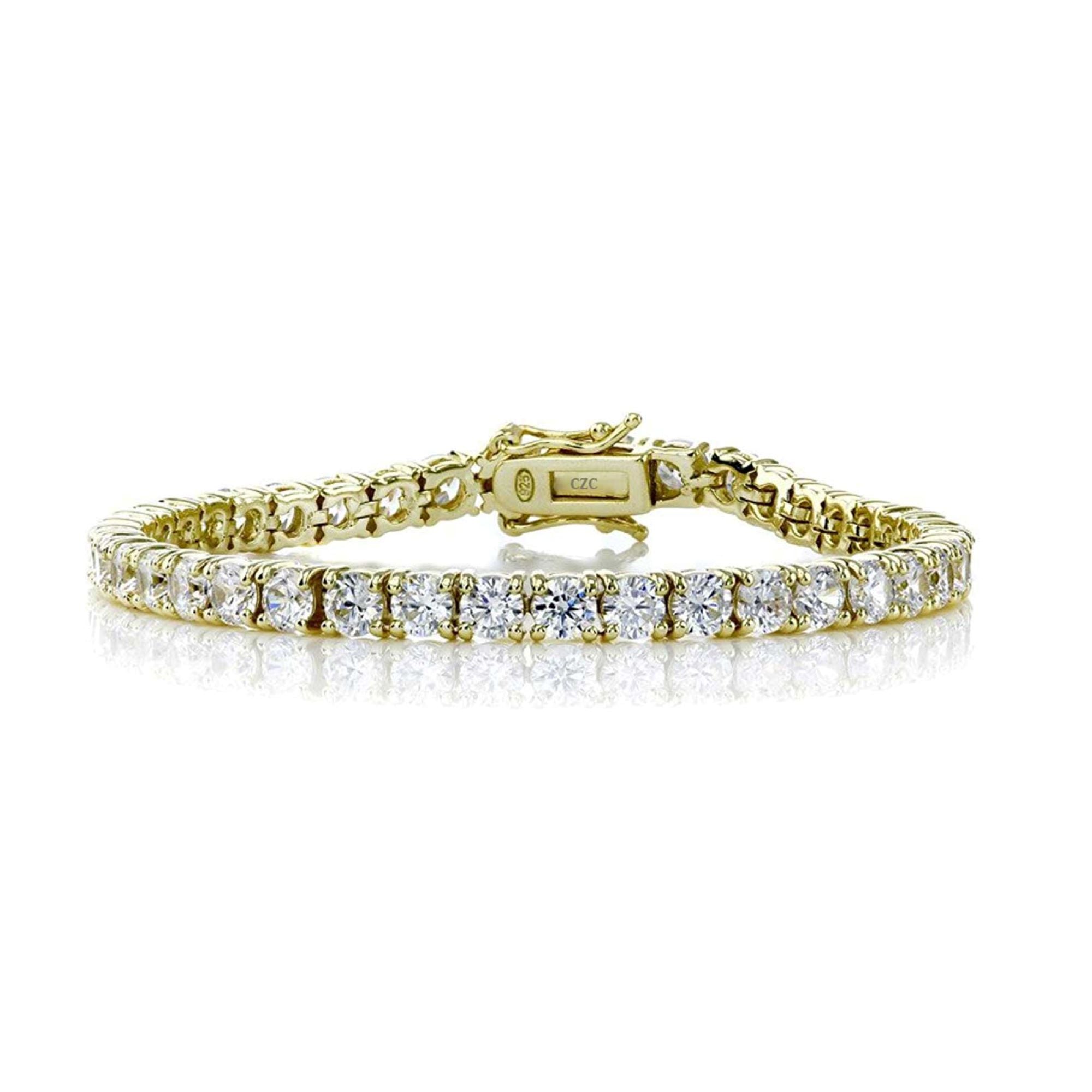 An array of stunning round 4mm cut clear cubic zirconia stones are prong-set in this classic tennis-style bracelet. Crafted from .925 sterling silver and secured with a box clasp, this elegant bracelet is perfect for evening wear and makes a fantastic gift. Available in multiple color and plating options.