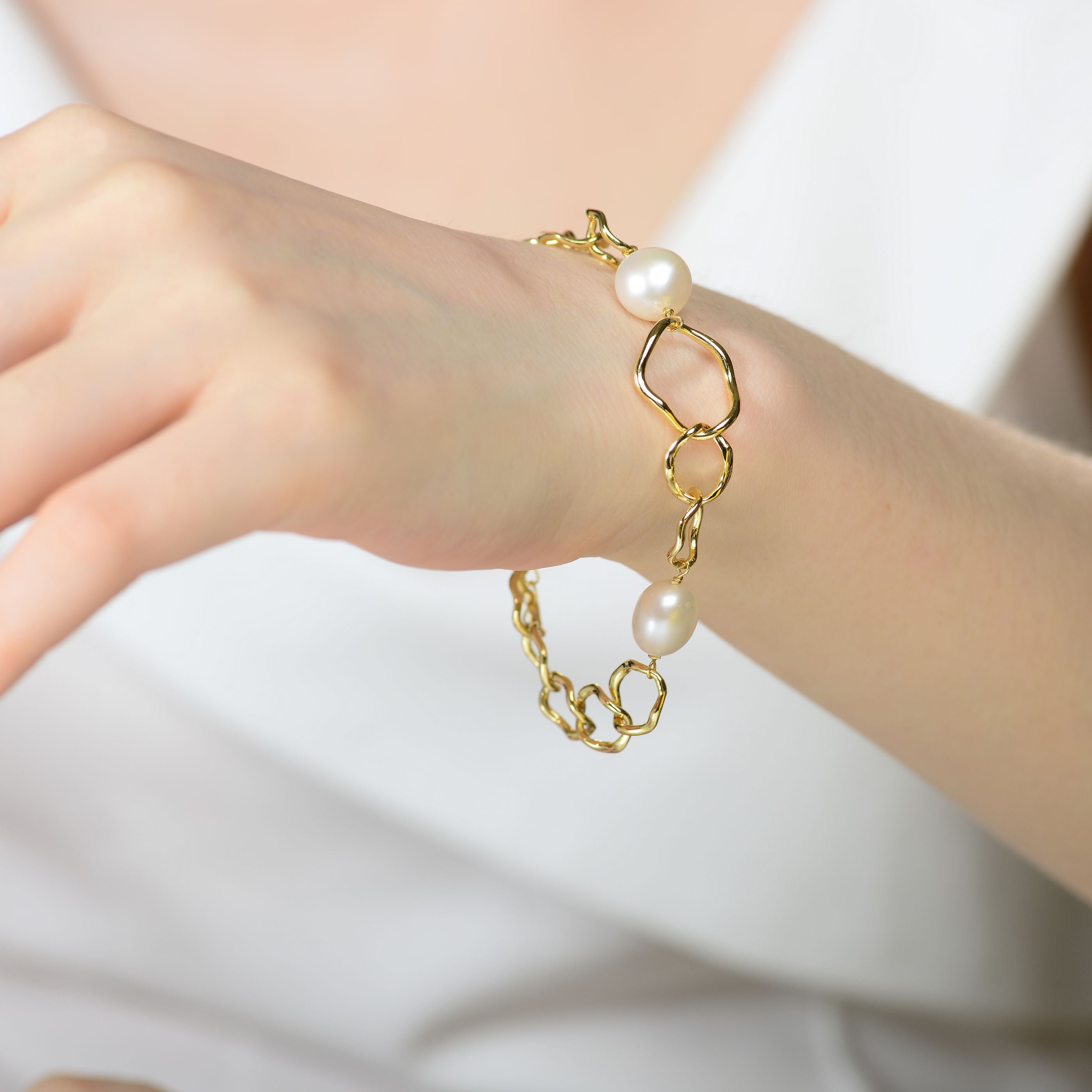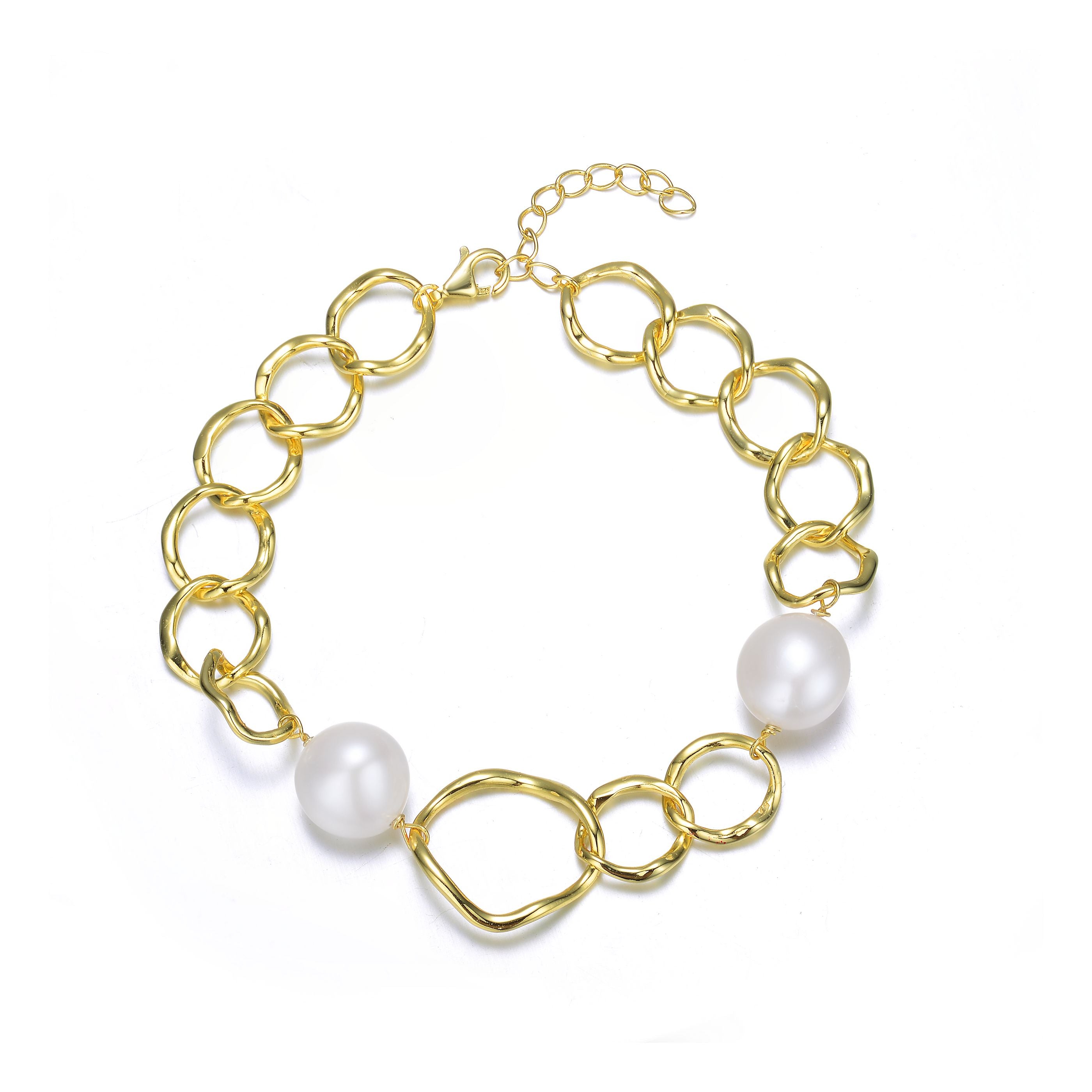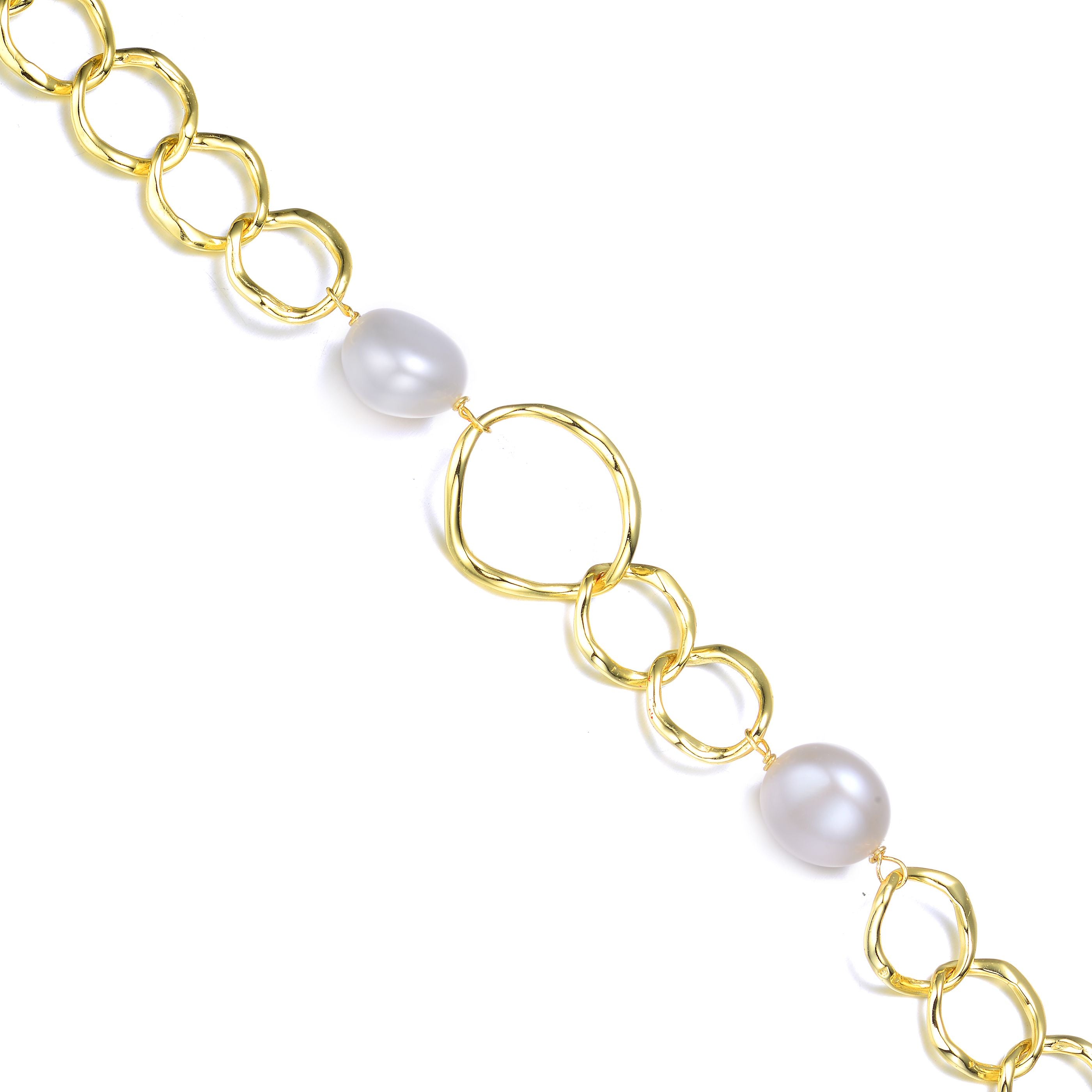 Sterling Silver Gold Plating and Genuine Freshwater Pearl chain Bracelet