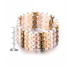 This elegant White Gold Plated Multicolored Five-Row Bracelet is a stunning statement piece that blends timeless sophistication with a modern touch. The bracelet features five rows of vibrant, multicolored pearls , meticulously set with silver-tone spacers for a sleek, polished finish. Its adjustable fit ensures comfort while showcasing an exquisite design perfect for both formal occasions and everyday wear.