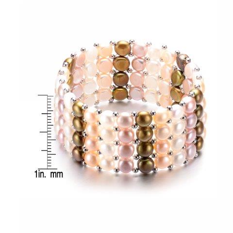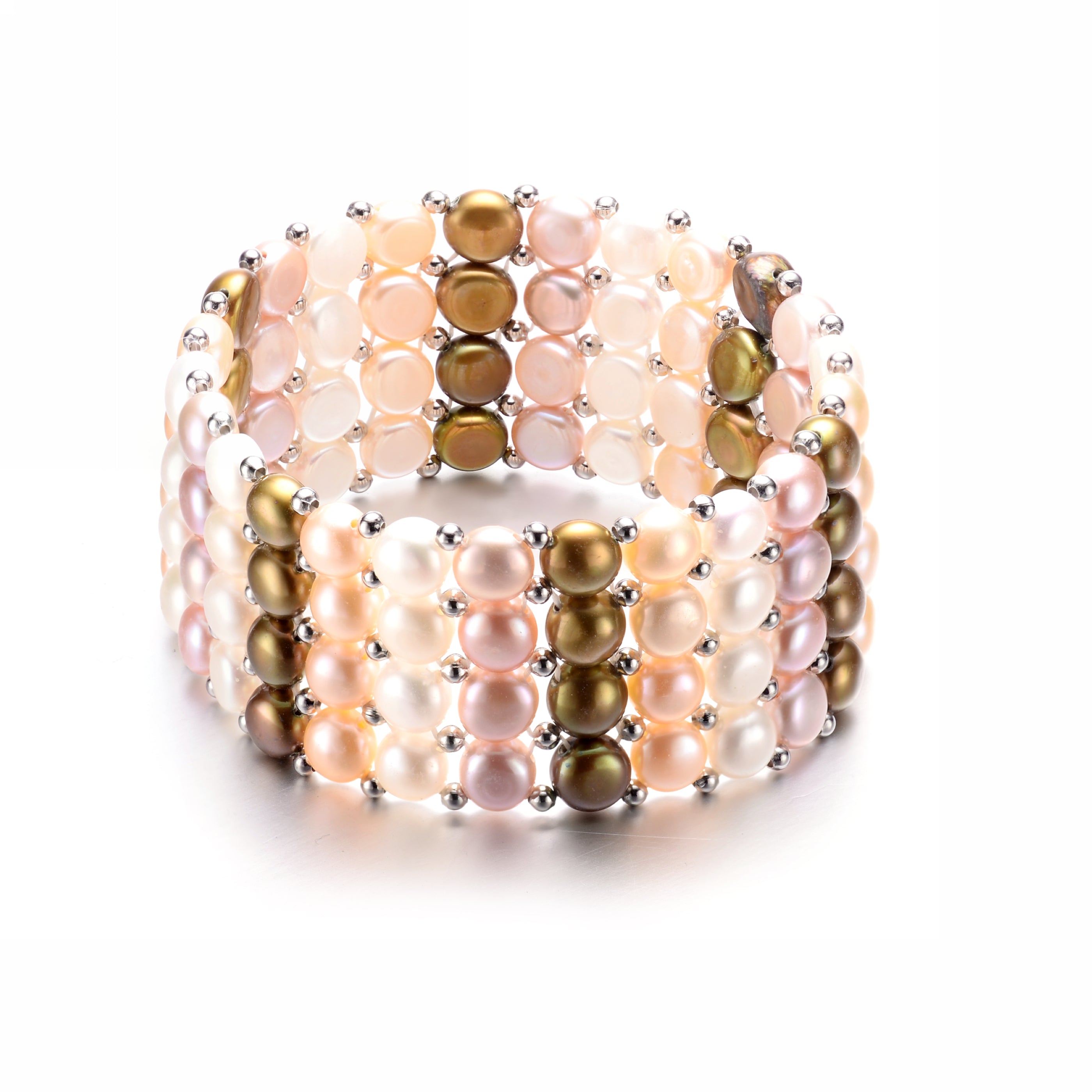 White Gold Plated Multicolored Pearl Five Row Last Pair Bracelet