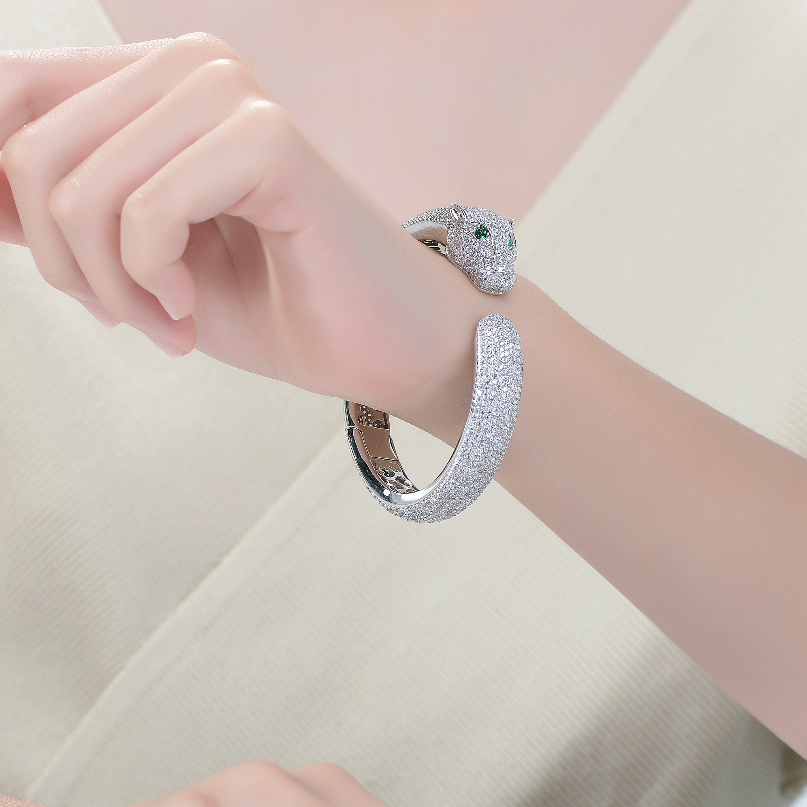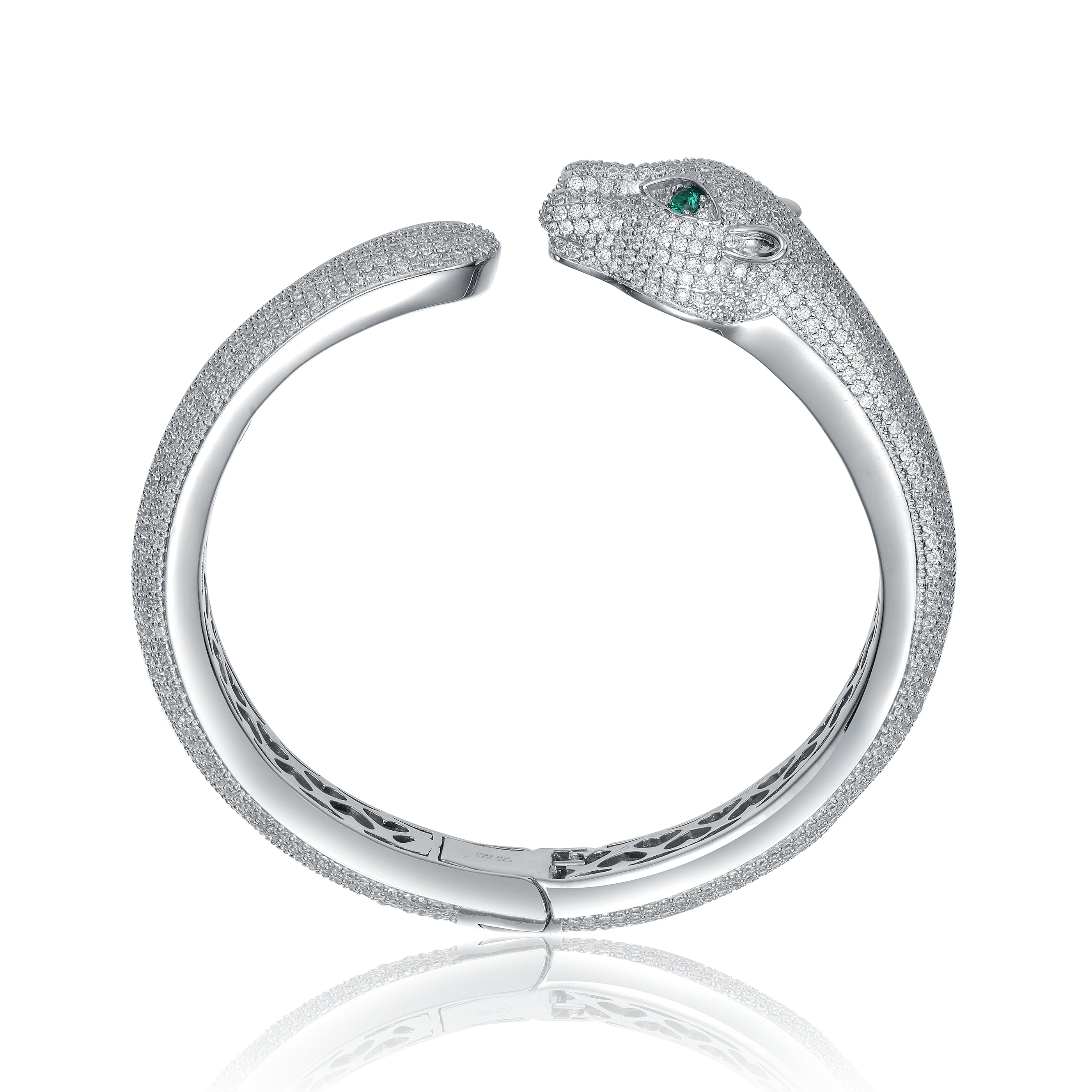 Simone Hinged Open Cuff Panther Bangle Bracelet