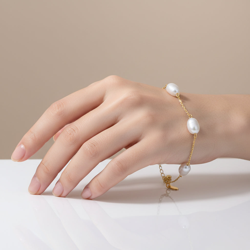 Brigitte Golden Dainty Chain Pearl Bracelet