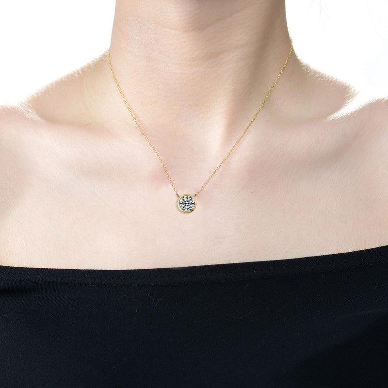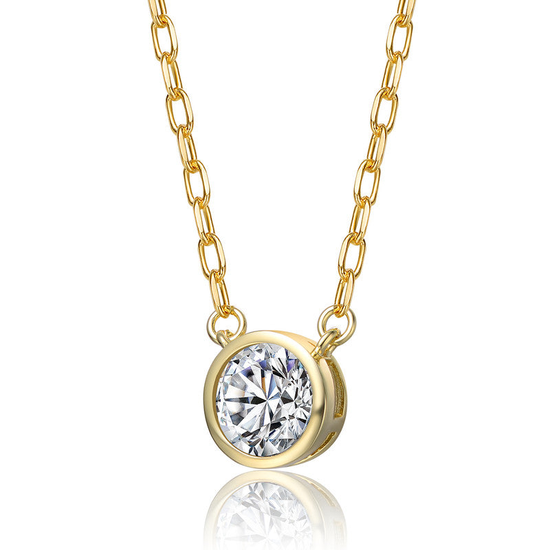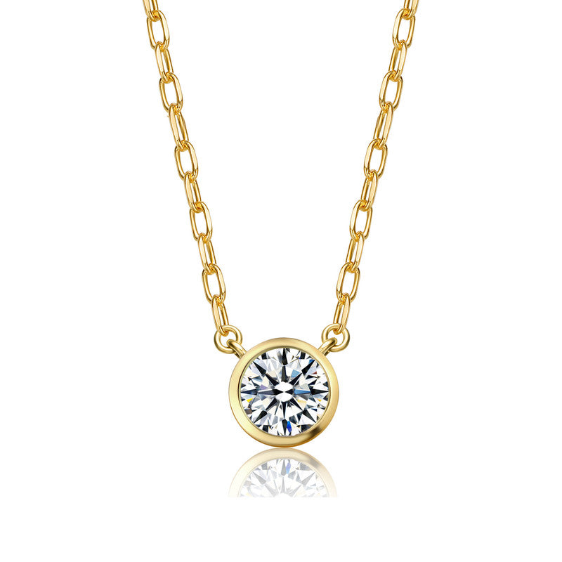This classic round pendant necklace features a radiant cubic zirconia set in a smooth gold-plated bezel. Its timeless design delivers effortless sparkle suitable for any occasion.