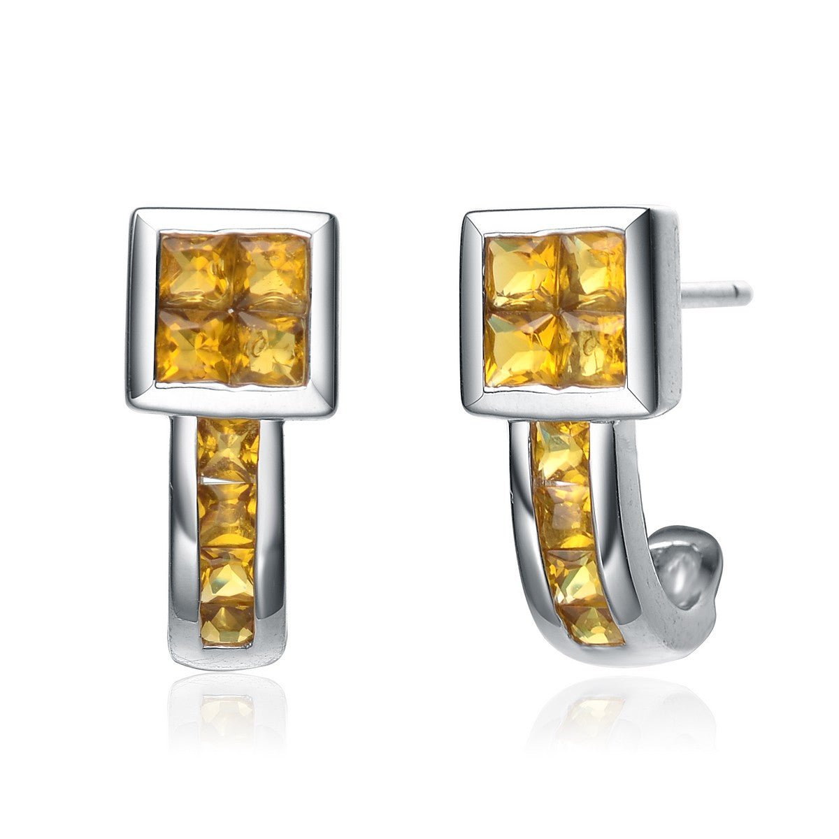 Elegant .925 Sterling silver amber cubic zirconia geometric earrings. These gorgeous earrings feature amber princess cut cubic zirconia stones set in bezel. Crafted of .925 Sterling silver with rhodium plating and secure with butterfly closure.
