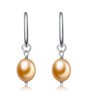 Elegant .925 Sterling silver coffee pearl drop earrings. These drop earrings feature a coffee pearl that dangles from solid .925 Sterling silver. Crafted of .925 Sterling silver with rhodium plating and secure with saddleback. Also available in Yellow.