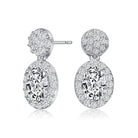 These simple yet sparkling oval earrings can be worn anytime and anywhere with its classic design you'll never find it hard to pair these earrings. These earrings feature a large oval cubic zirconia with a halo of clear round cubic zirconia and a post consisting of round cubic zirconia cluster. These are set in .925 Sterling silver with rhodium plated and secure with butterfly clasp.