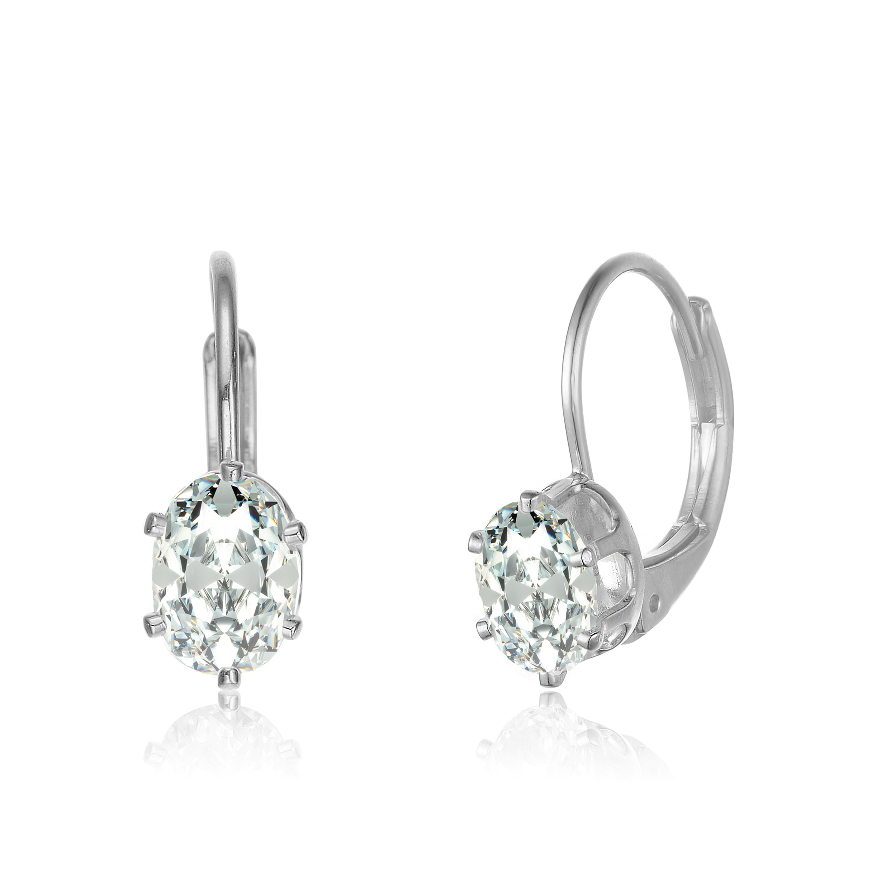 Elegant .925 Sterling silver cubic zirconia lever back drop earrings. these glimmering earrings feature large clear oval cubic zirconia set in prong. Crafted of .925 Sterling silver in rhodium plating and secure with lever back closure. Available in 14K gold platted.