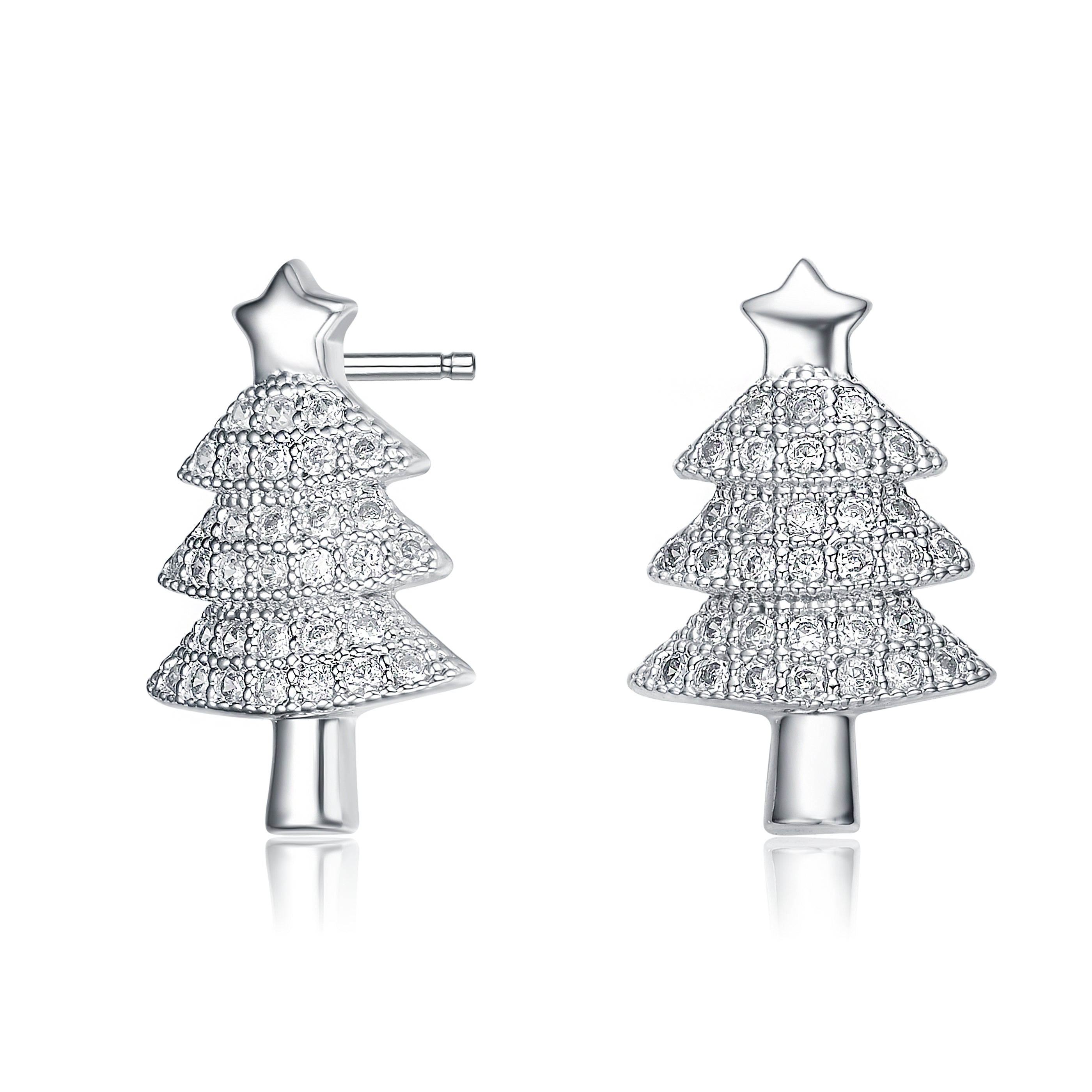 Feel the holiday season every time you wear these Christmas tree inspired earrings. These earrings feature a tree that's studded with clear round cubic with a polished star on top of the tree and a polished tree trunk. These earrings are perfect as a holiday gift and it is also versatile to be paired with other outfit. This pair secures with butterfly clasp.