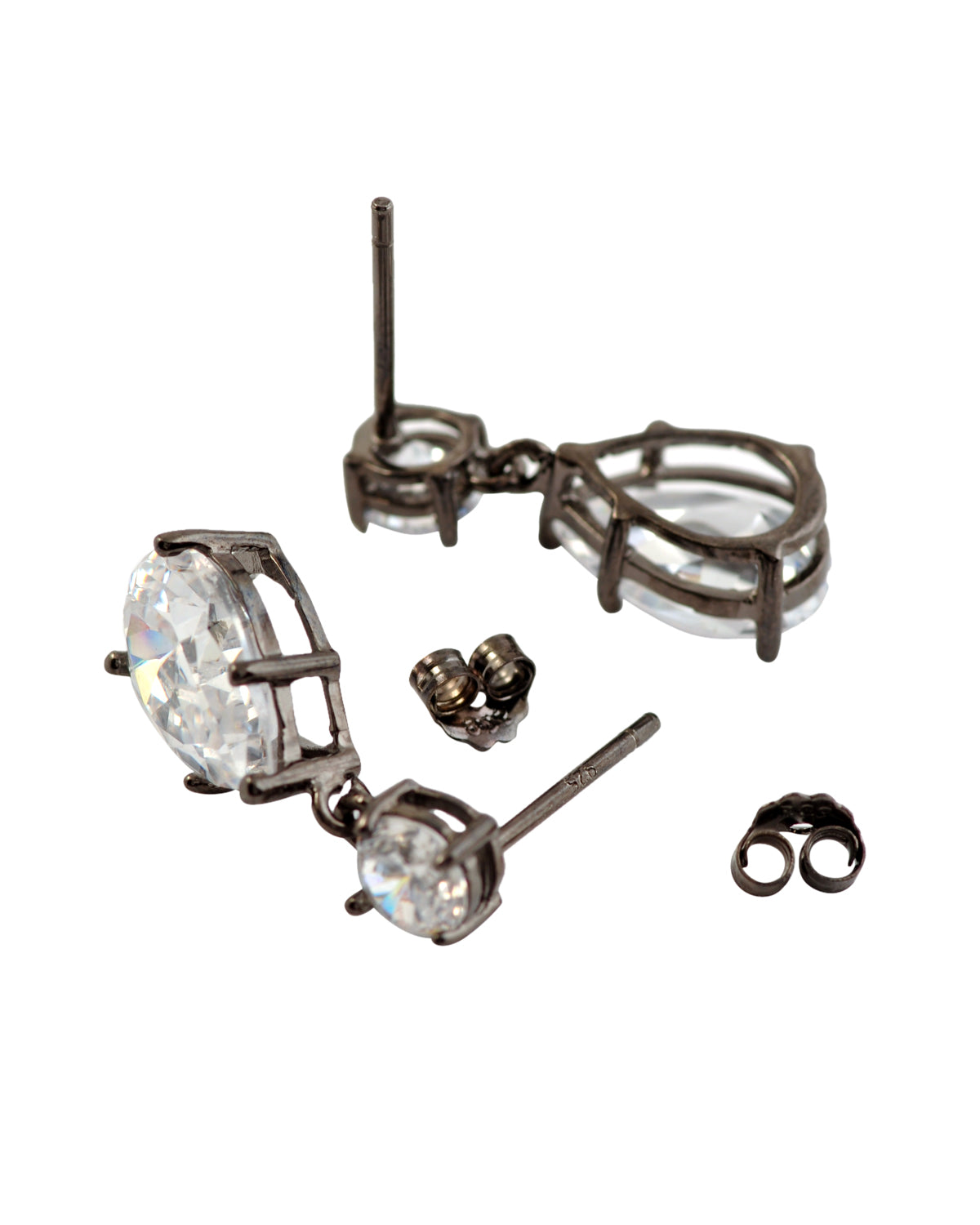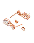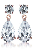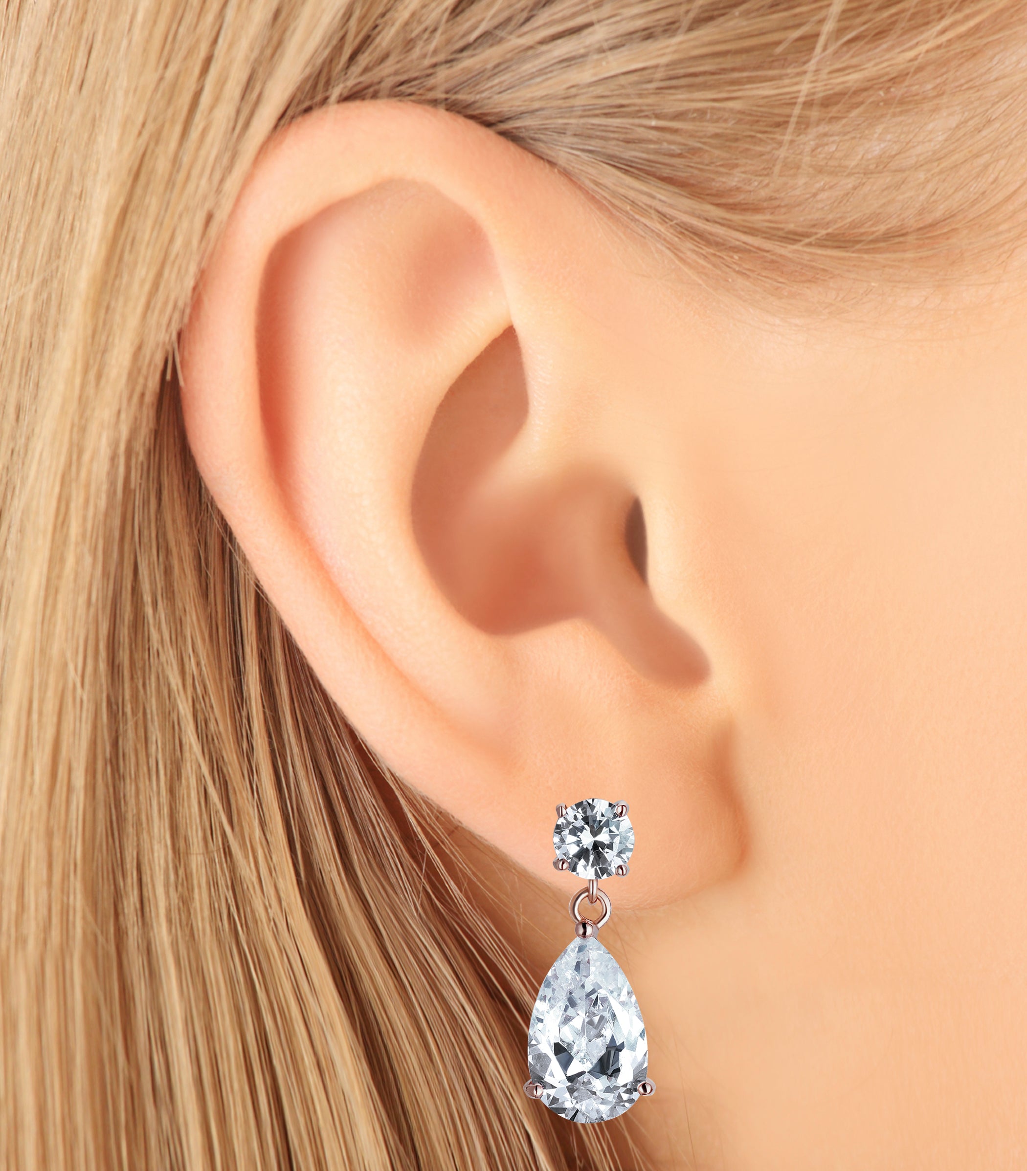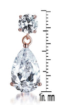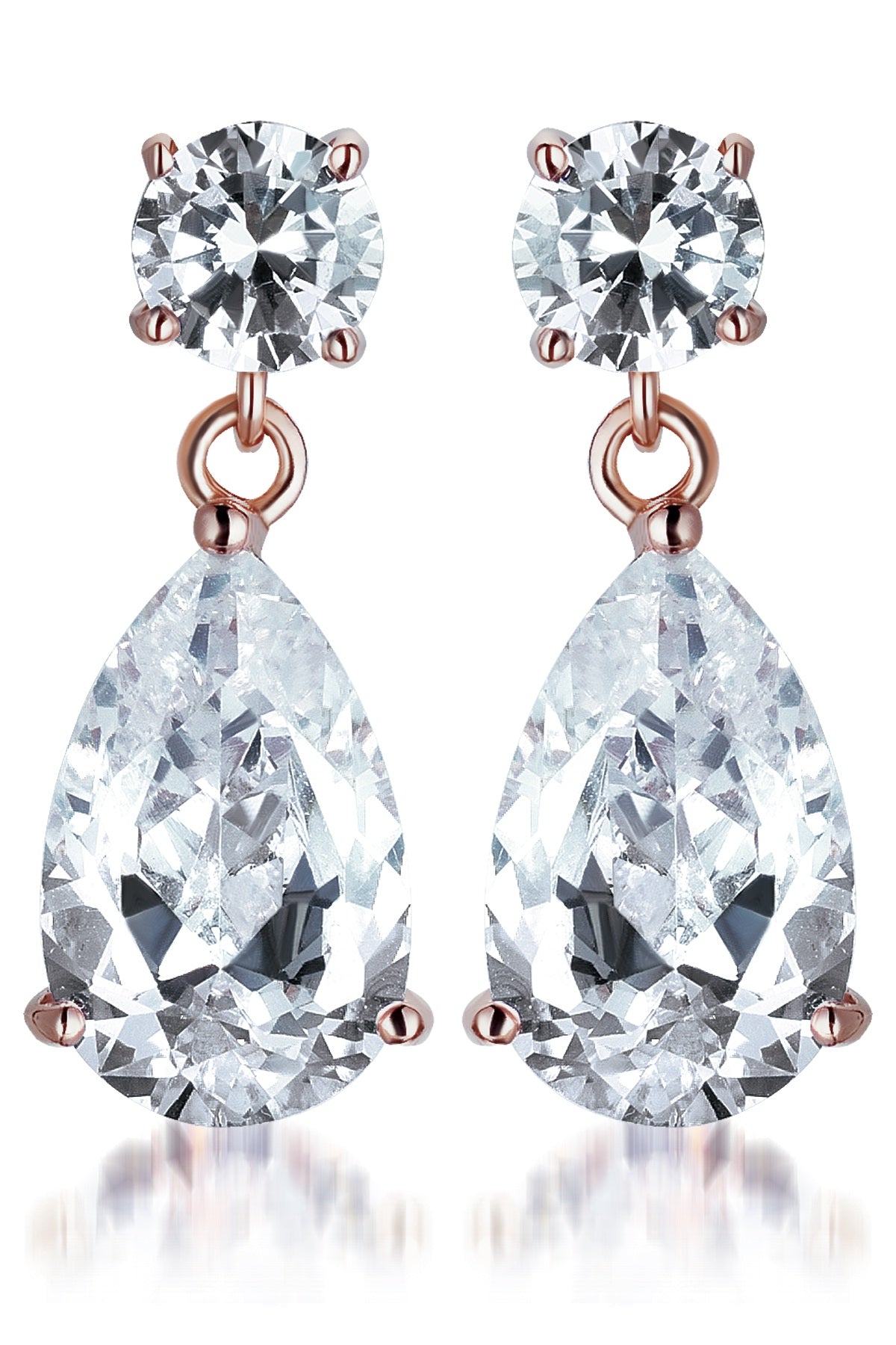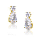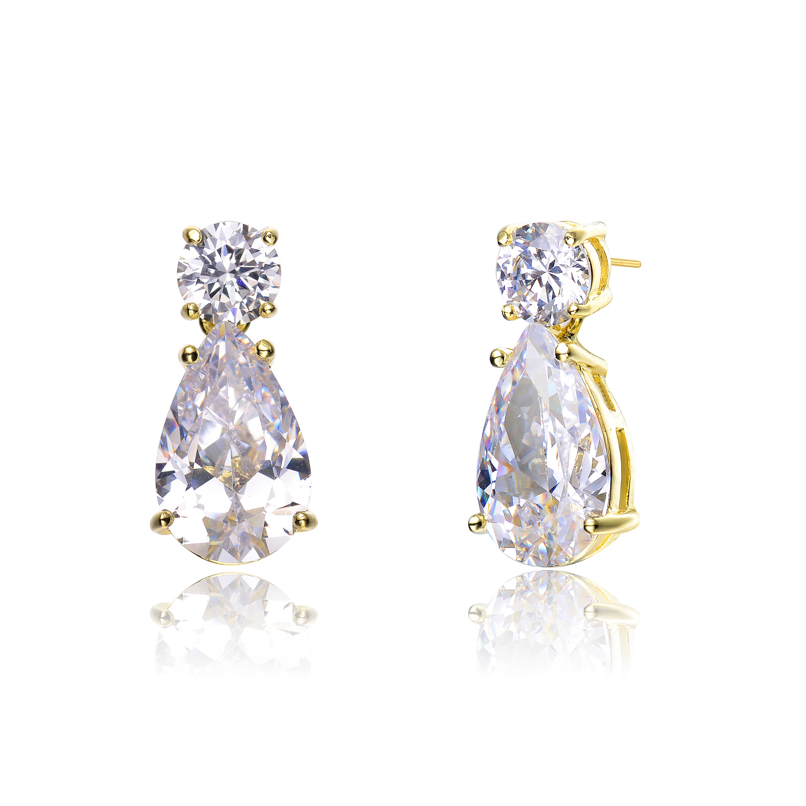 Stylish .925 Sterling silver gold plated cubic zirconia teardrop earrings. These elegant drop earrings feature dazzling clear round and pear cubic zirconia stones. The center pear cubic zirconia stone is set in prong setting in the center of the silver frame accented by clear round cubic zirconia stone on the top. Crafted of .925 Sterling silver with gold plating and secure with butterfly closure.
