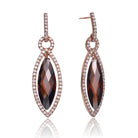Elegant .925 Sterling silver rose gold plated amethyst cubic zirconia teardrop earrings. These beautiful earrings feature a large marquise purple cubic zirconia stone surrounded with smaller clear round cut stones. Crafted of .925 Sterling silver in rose gold plating and secure with butterfly clasp. Availble in Pink and Cofee color stone.