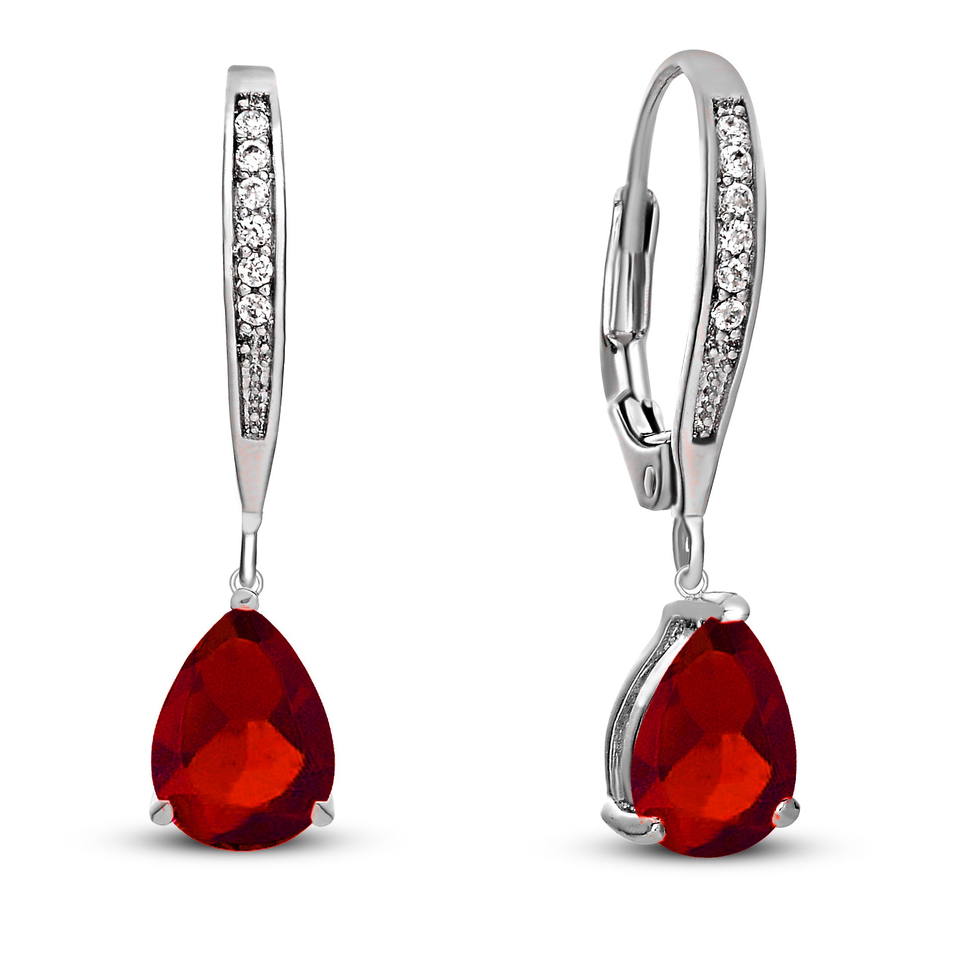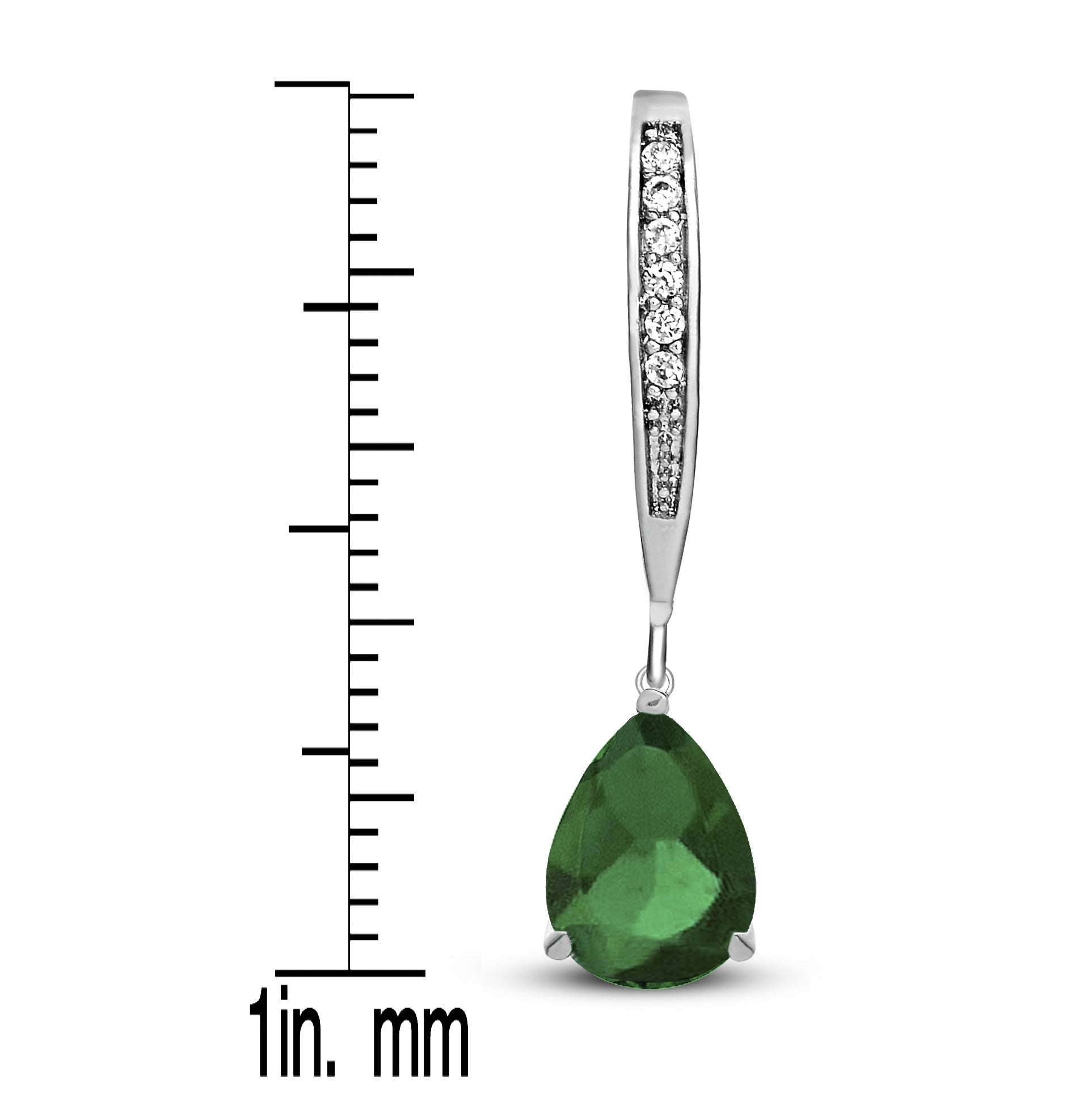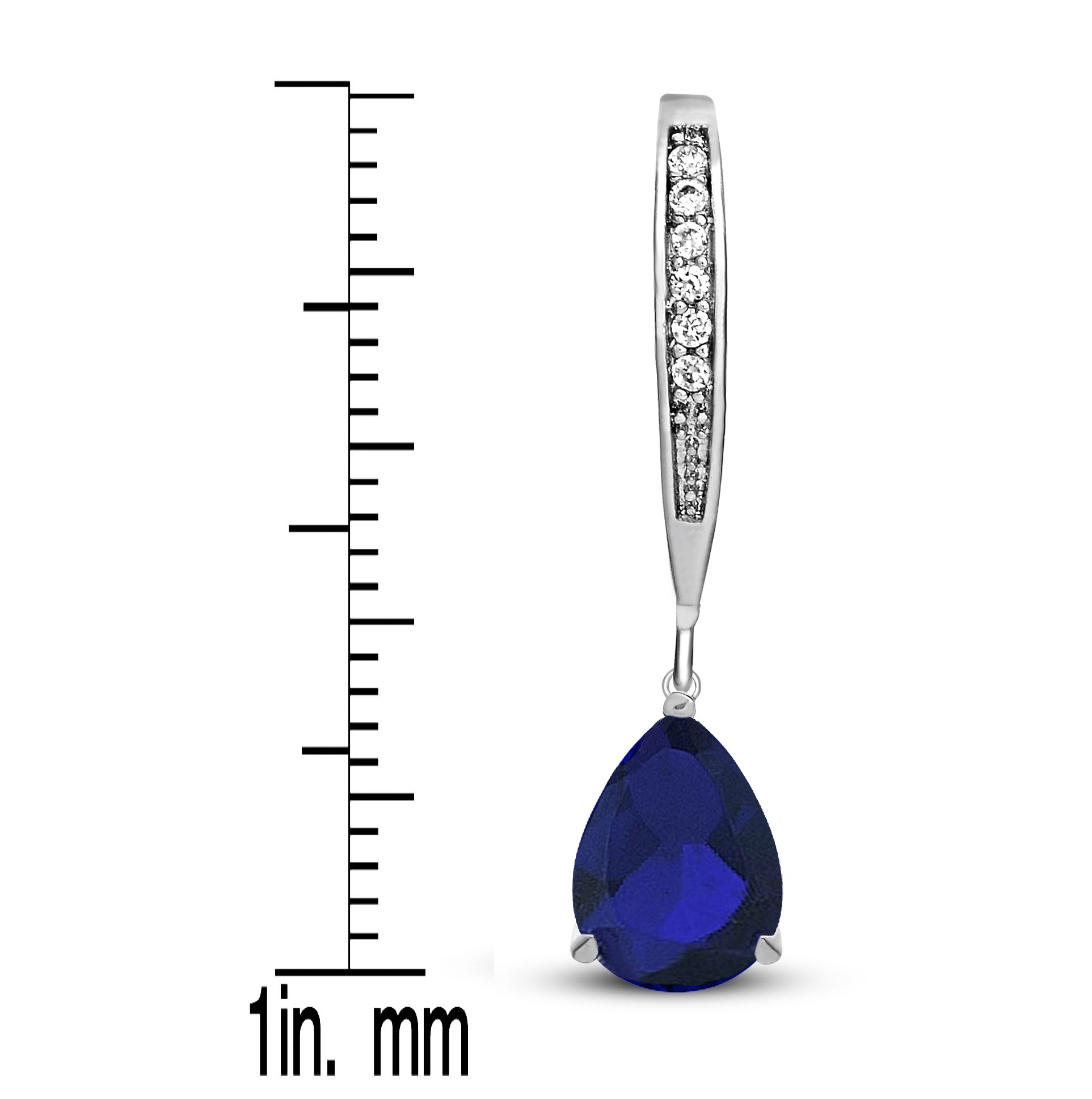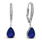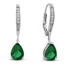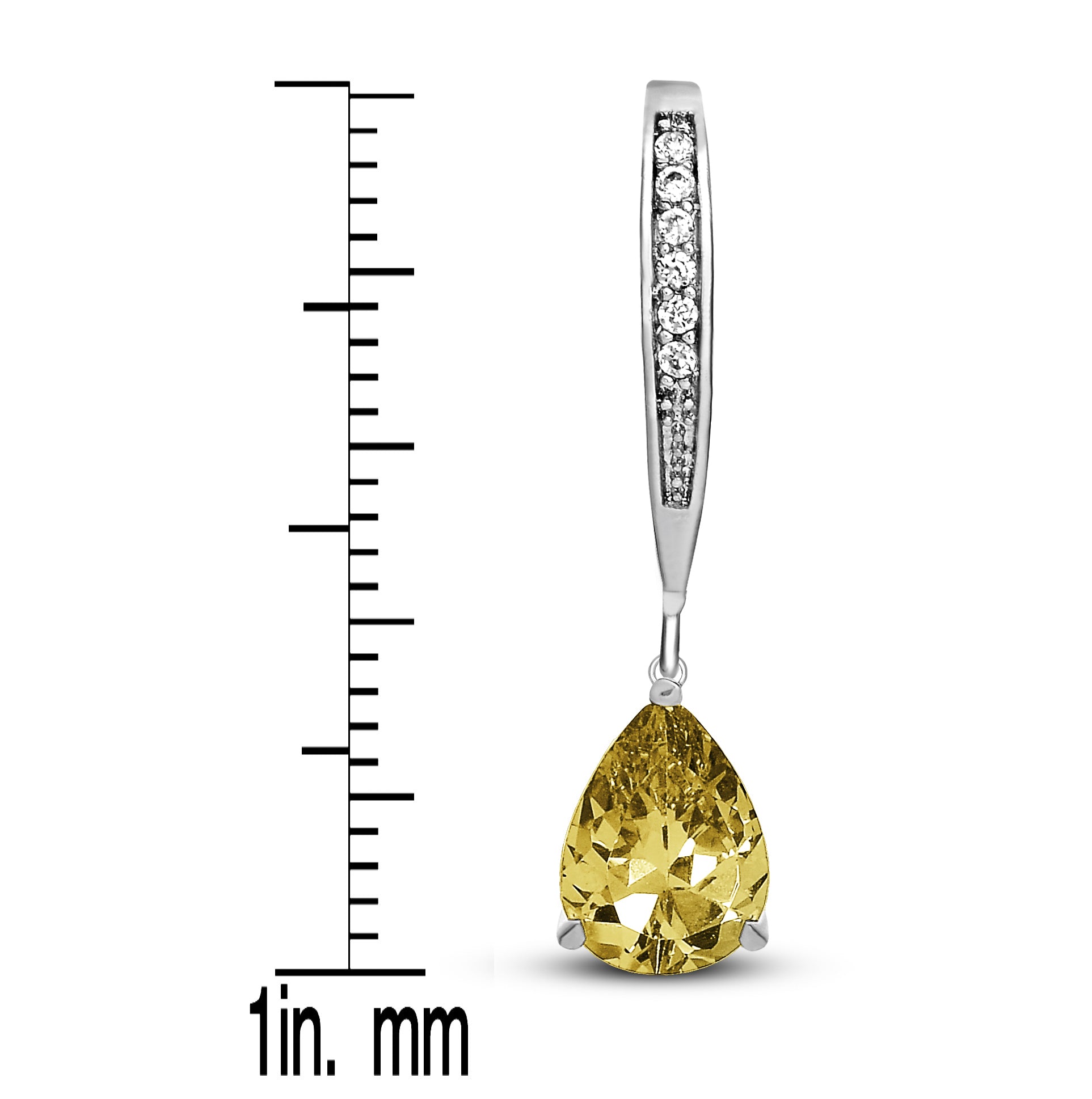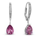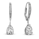 Elegant .925 Sterling silver cubic zirconia drop earrings. These pear drop cubic zirconia earrings are the perfect way to add a high glam element to all your favorite looks. It features large clear pear cubic zirconia stone on the bottom set in basket accented by clear round cubic zirconia stones on the front of the lever back. Crafted in .925 Sterling silver with rhodium plating and secure with a lever back. Available in colors White, Pink, Emerald, Ruby, Sapphire, Yellow.