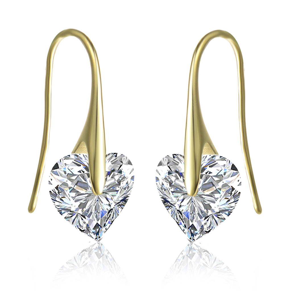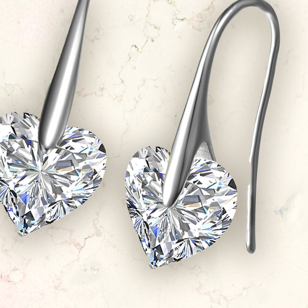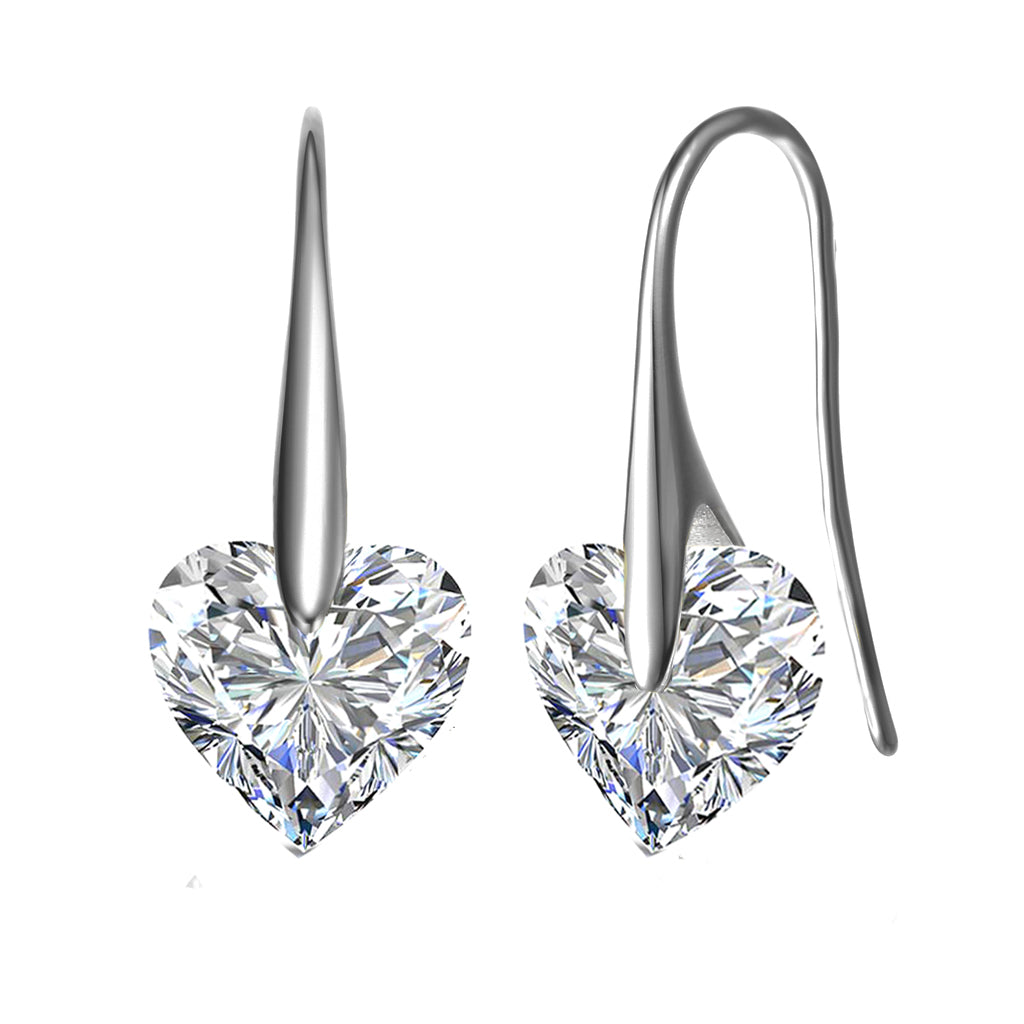Be the center of attention at your next party when wearing this sterling silver set of earrings. These dangling fish hook earrings feature a big heart cubic zirconia on the bottom part of the earring and is available in different colors and platings.