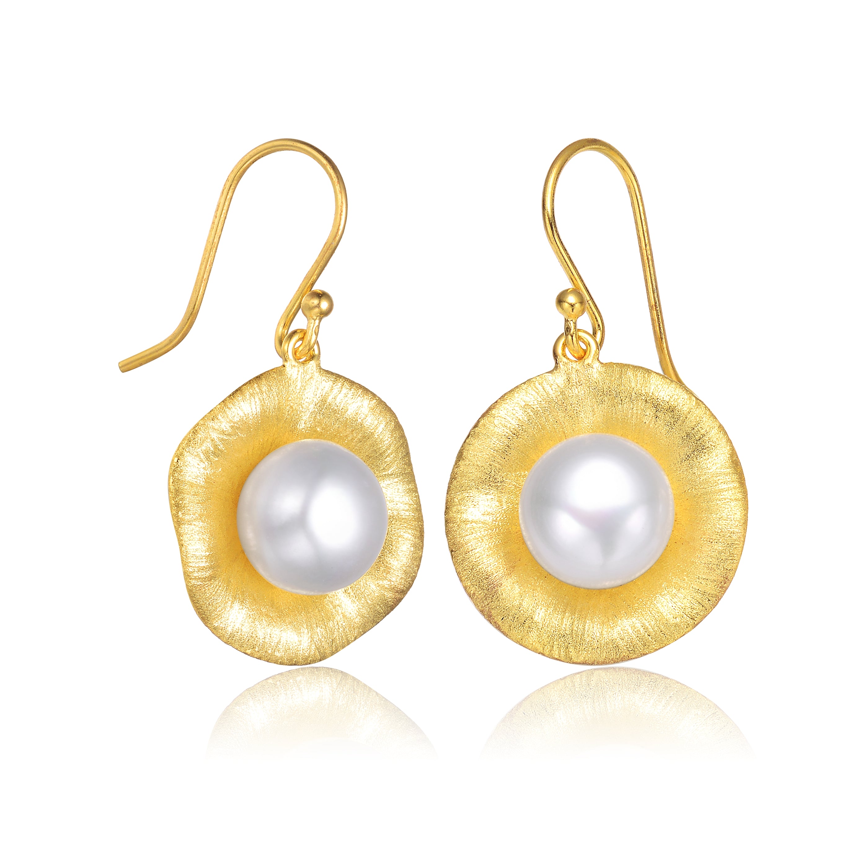Delphine Golden Brushed Flower Pearl Earrings