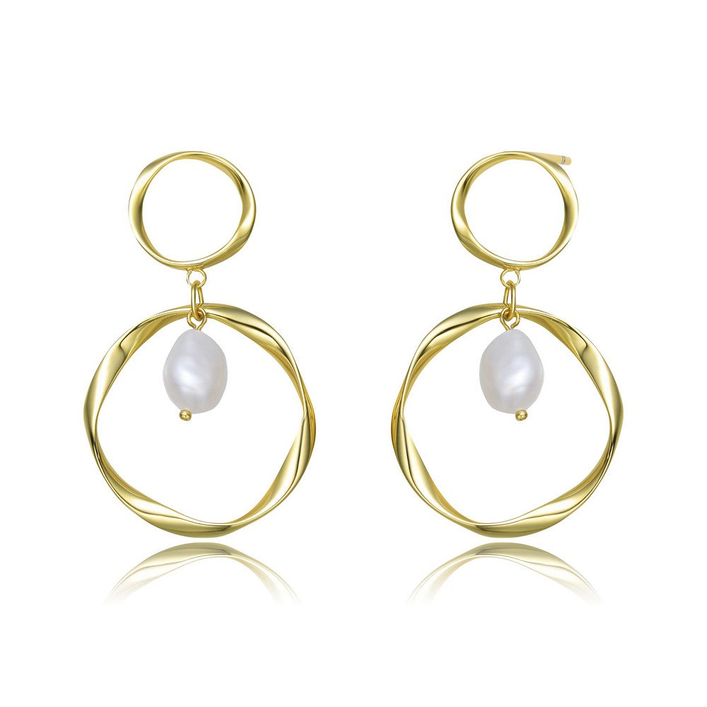 Brigitte Double Golden Ribbon Maxi Pearl Earring