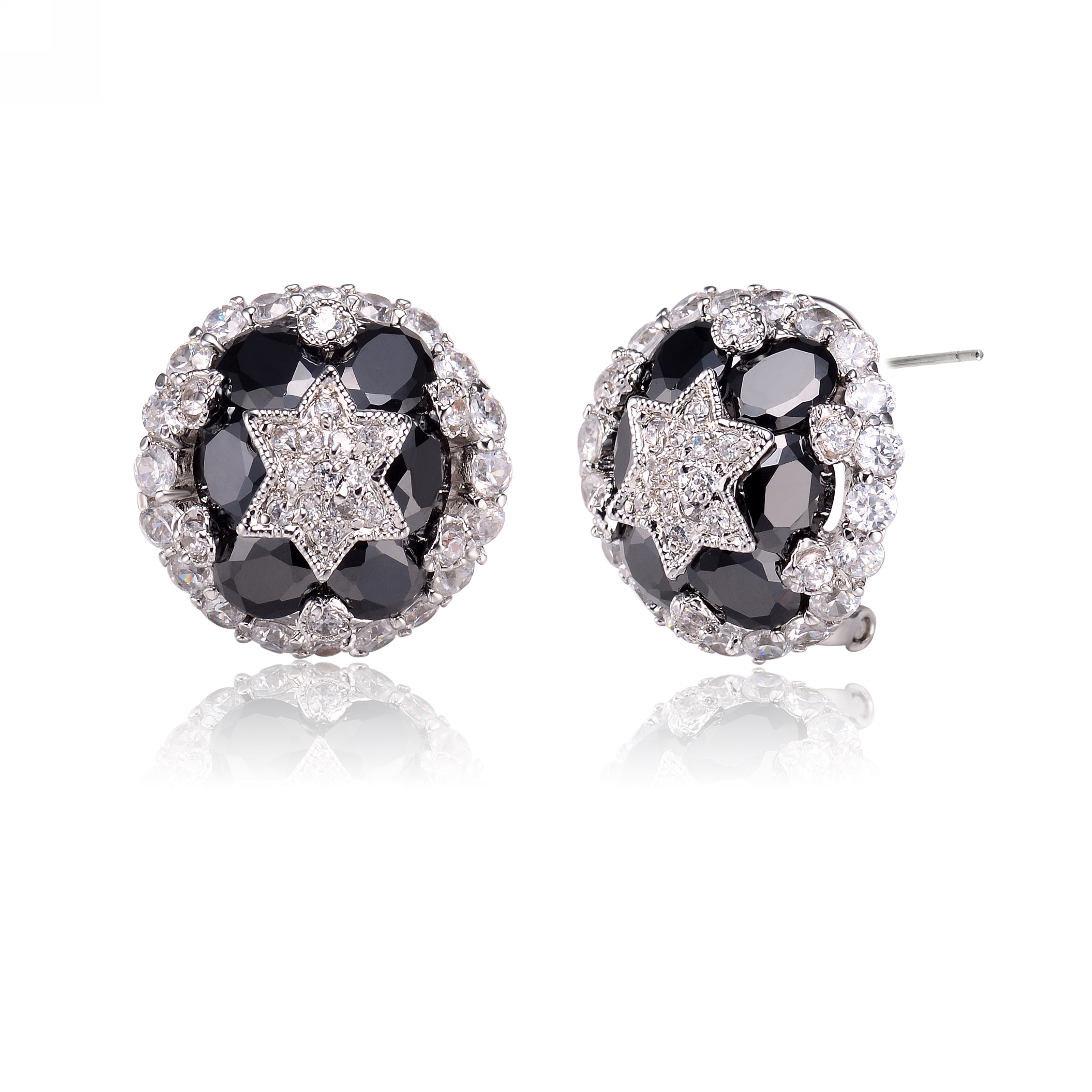 Bold contrast meets refined sparkle in these sterling silver stud earrings, featuring a striking star-shaped cluster of clear and black cubic zirconia. The dramatic interplay of light and dark stones creates a captivating focal point with modern edge, while the polished silver setting adds a clean, versatile finish. Designed to transition seamlessly from day to evening, this pair delivers confident style with a touch of celestial allure.