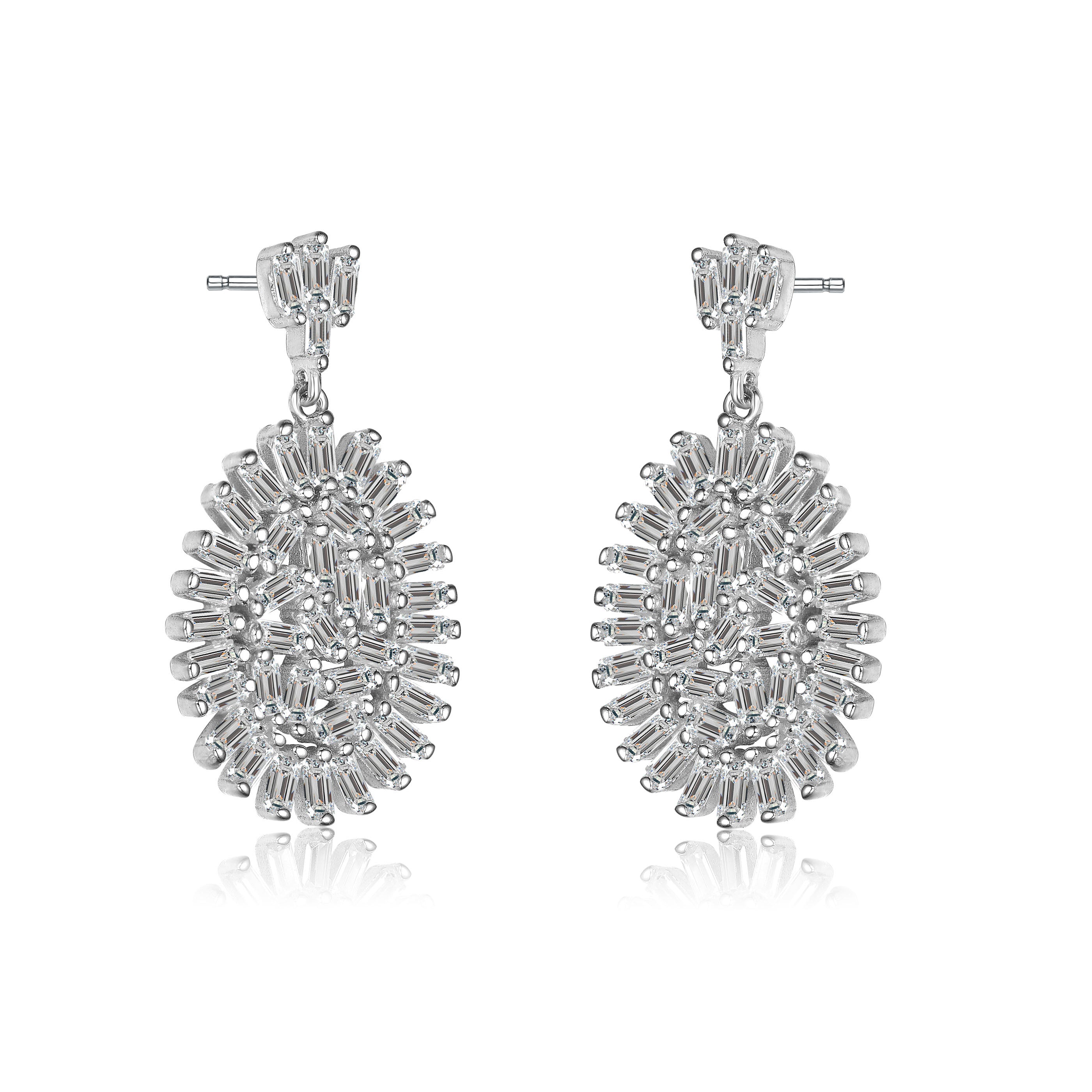 Flower-shaped design with a white cubic zirconia and petal like white cubic zirconia around the centerpiece, this .925 sterling silver earring brings out the classiness with a touch of grace that will surely give an astonishing glow.